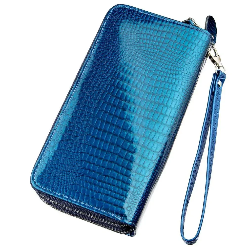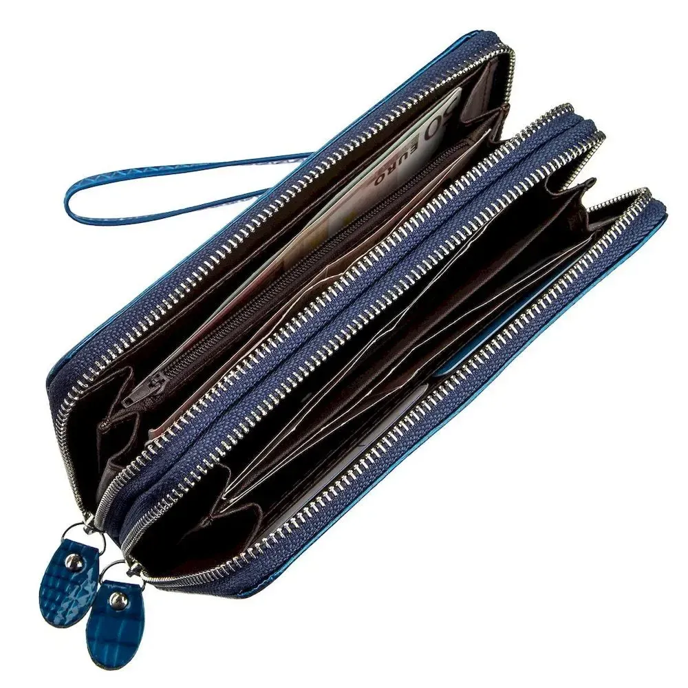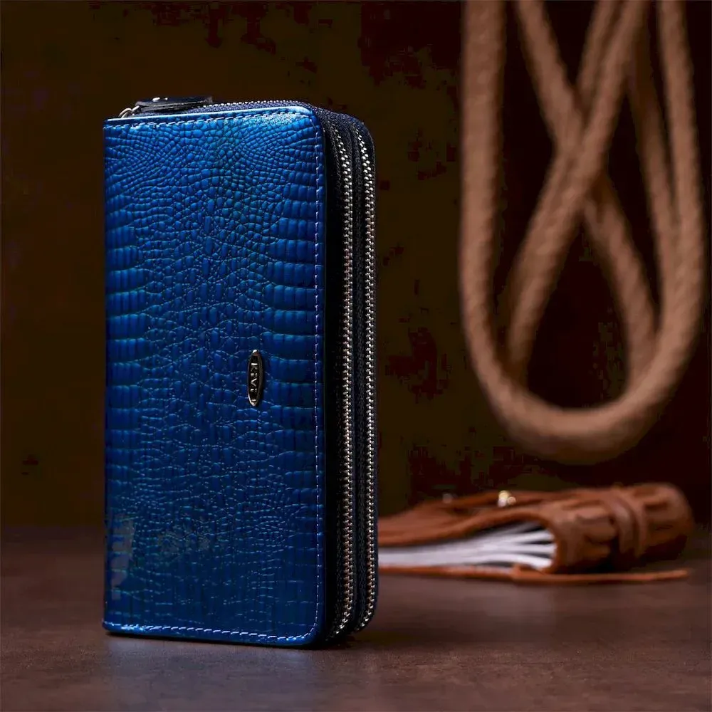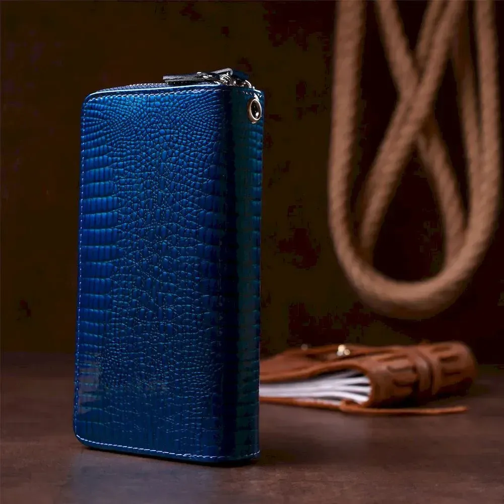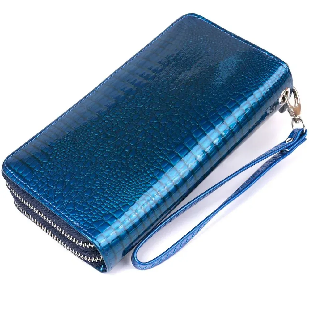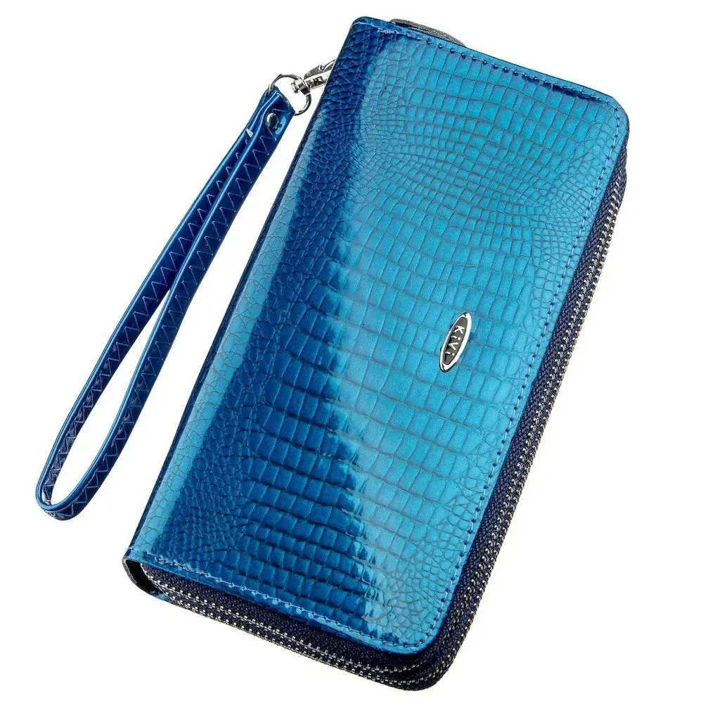 Гаманець жіночий з екошкіри на дві блискавки лаковий KIVI Хамелеон 19022