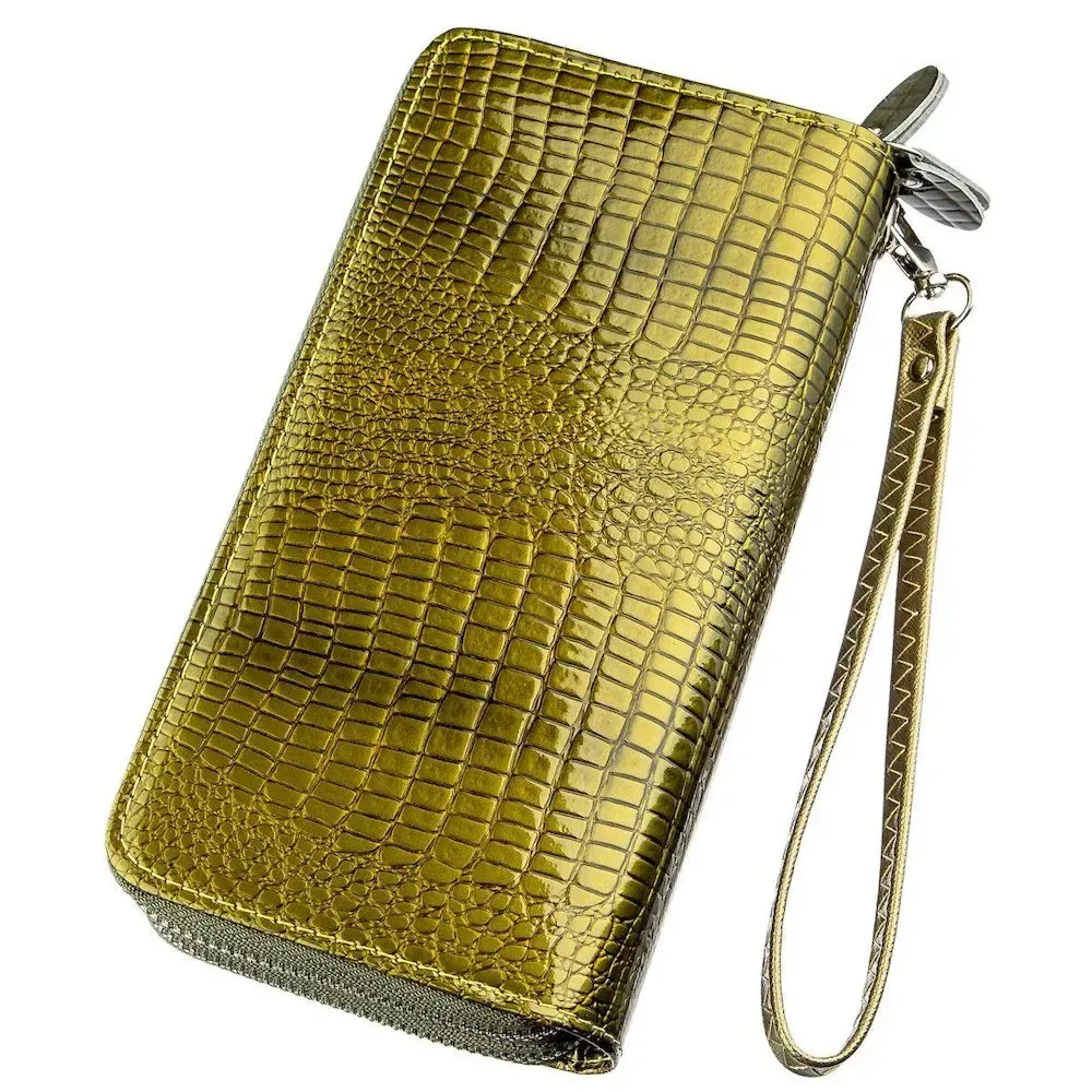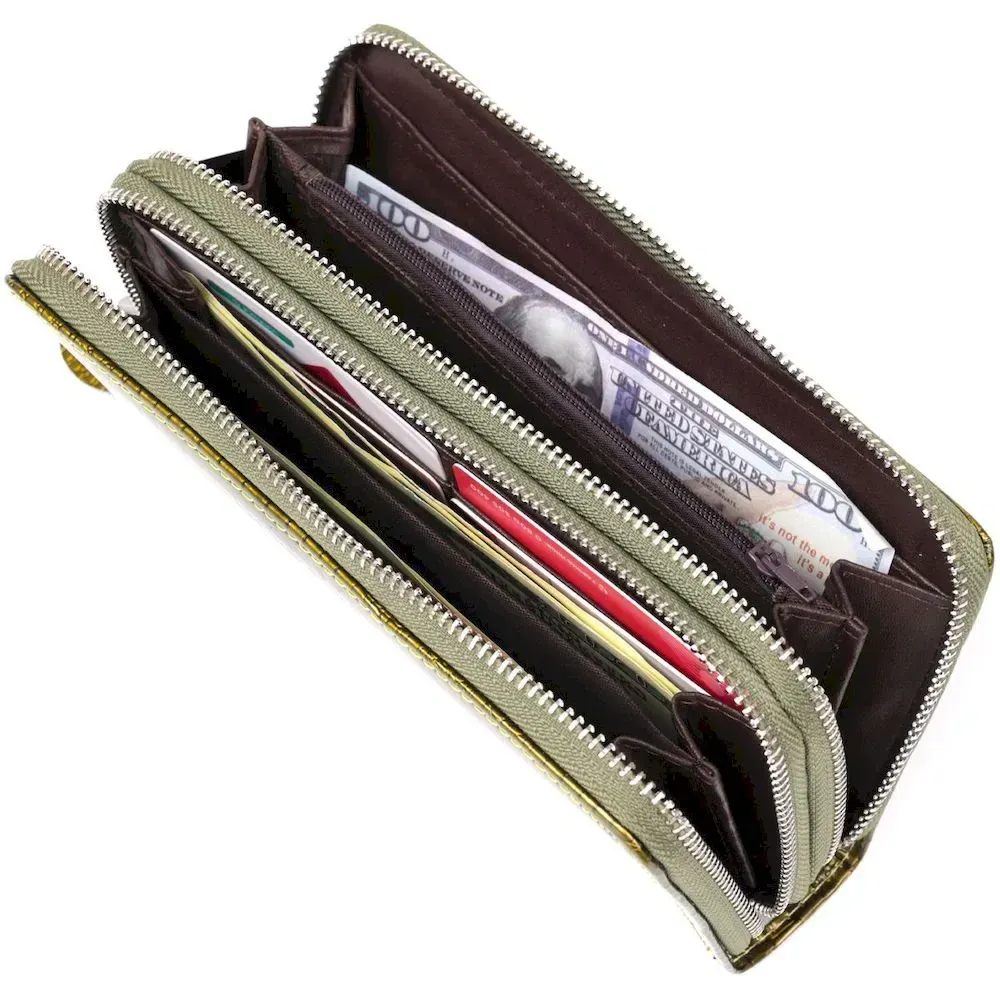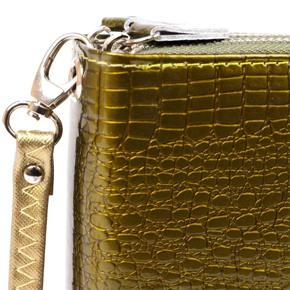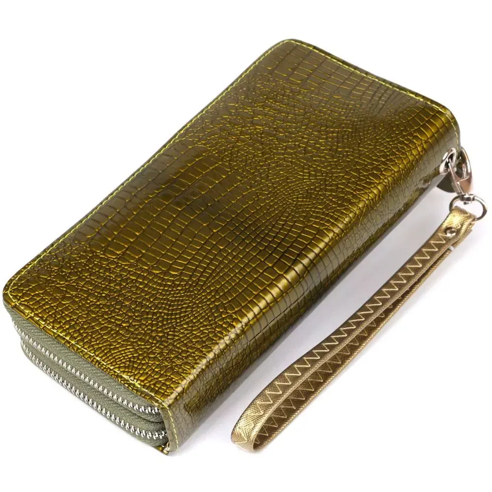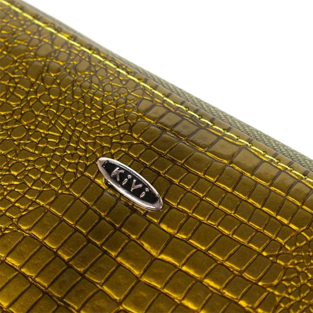 Гаманець жіночий з екошкіри на дві блискавки лаковий KIVI Хамелеон 19023 Зелений