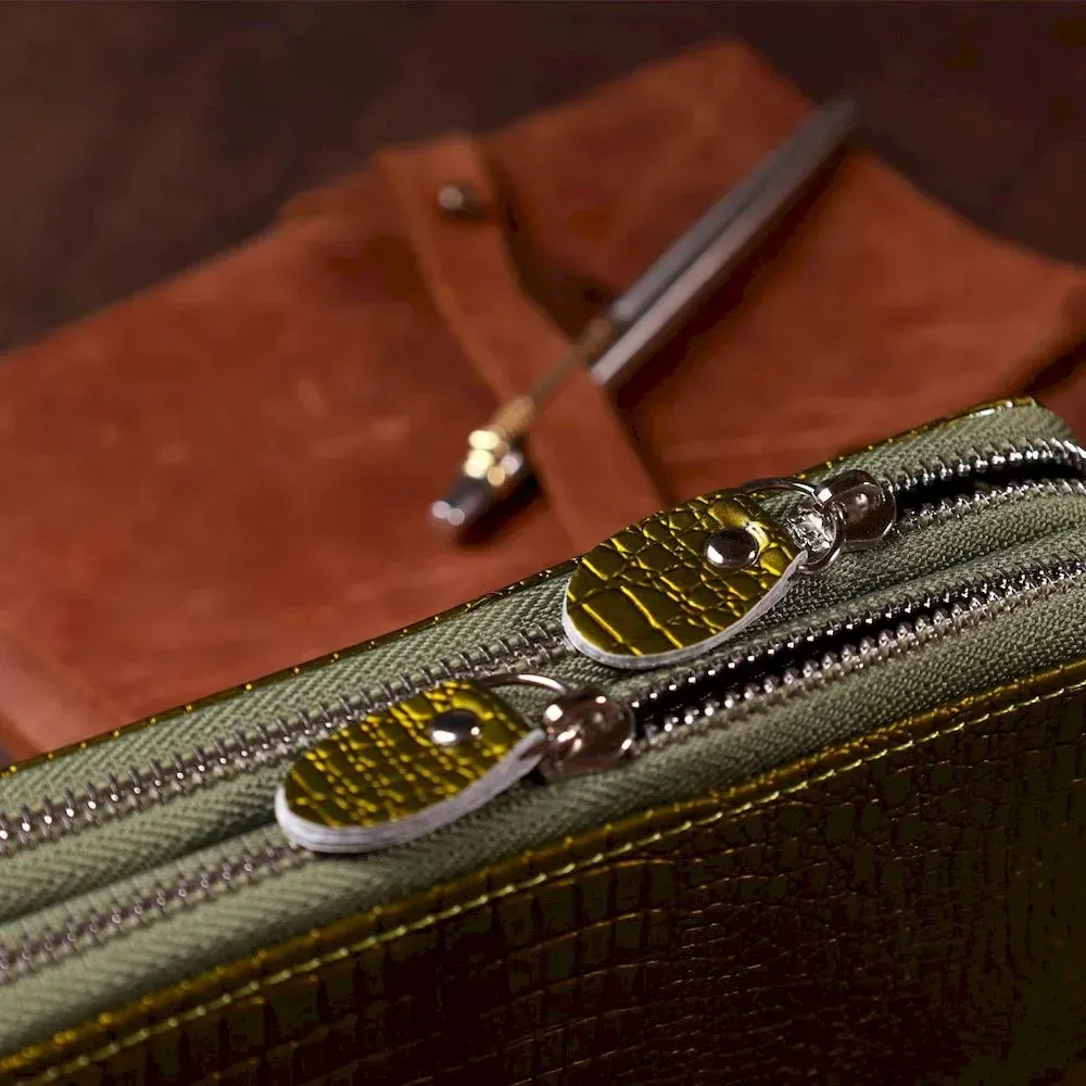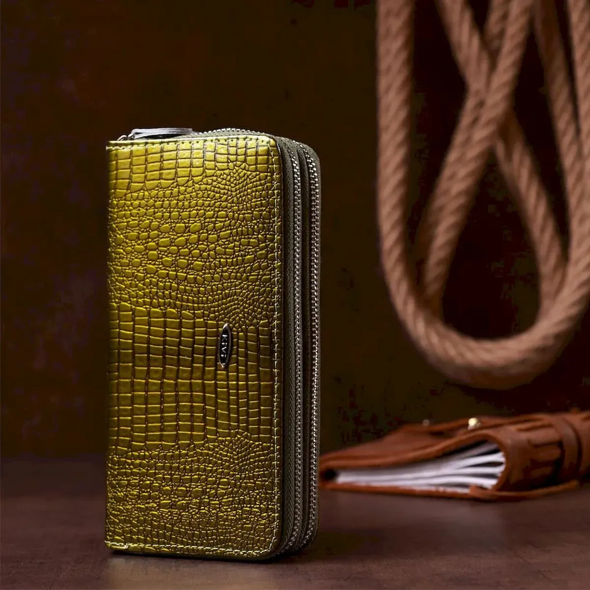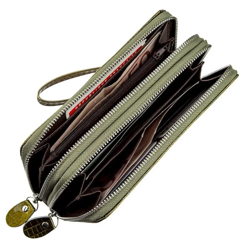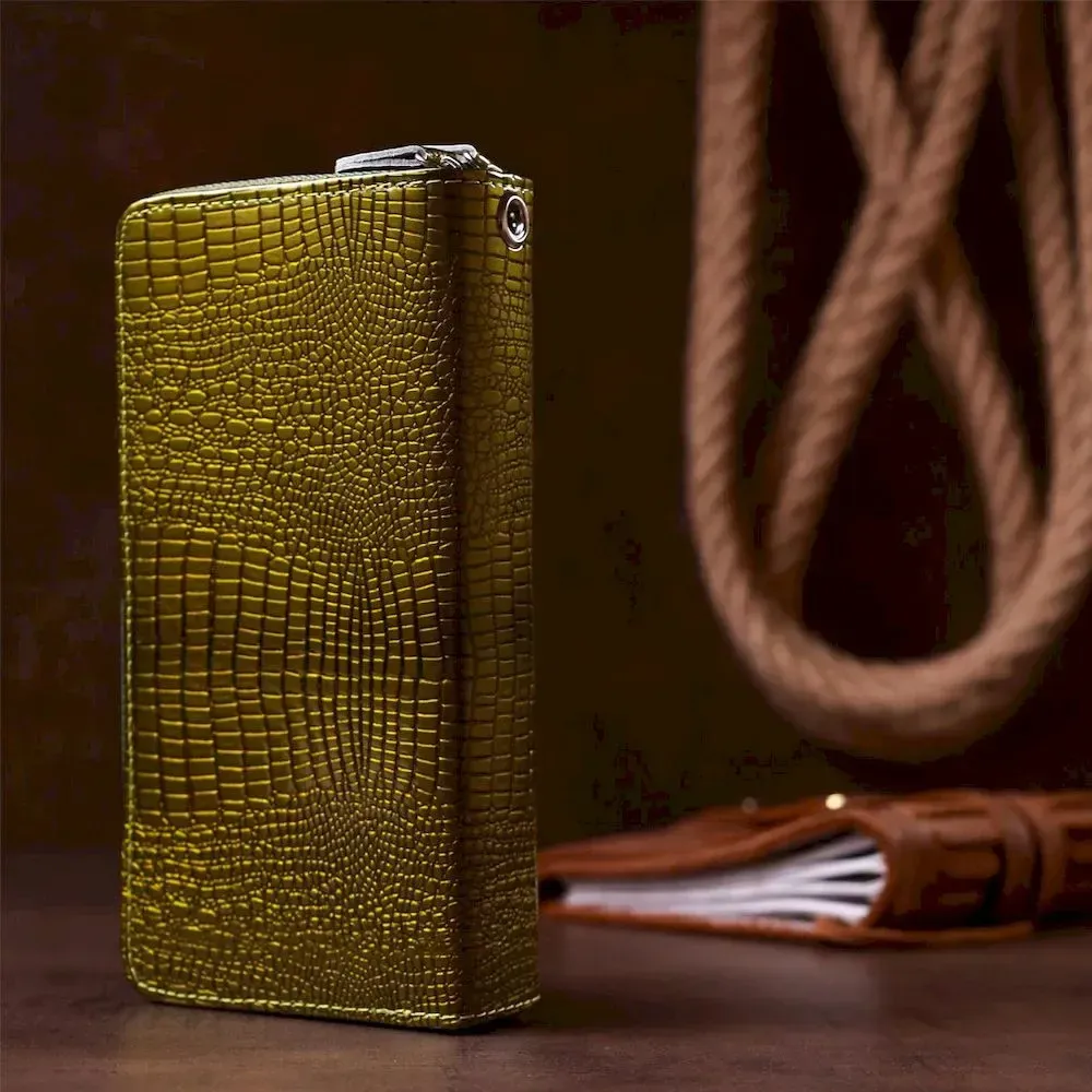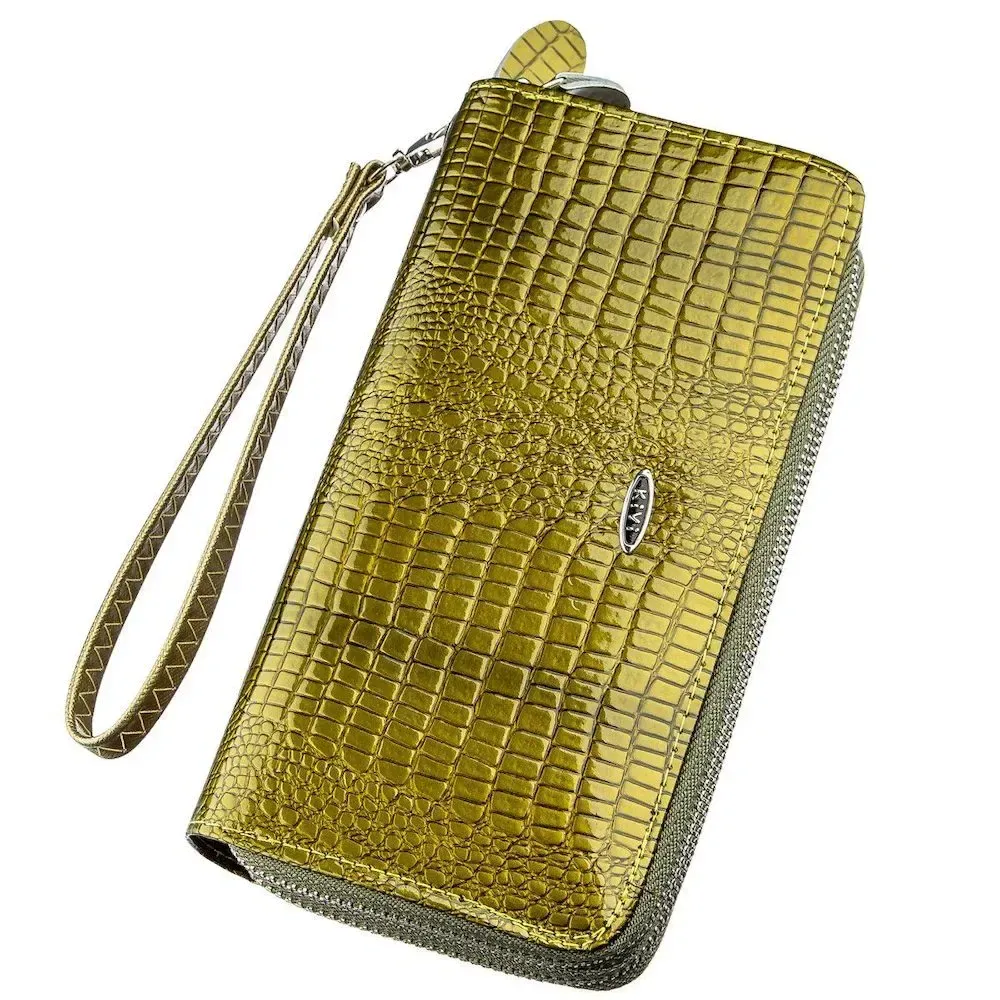 Гаманець жіночий з екошкіри на дві блискавки лаковий KIVI Хамелеон 19023 Зелений