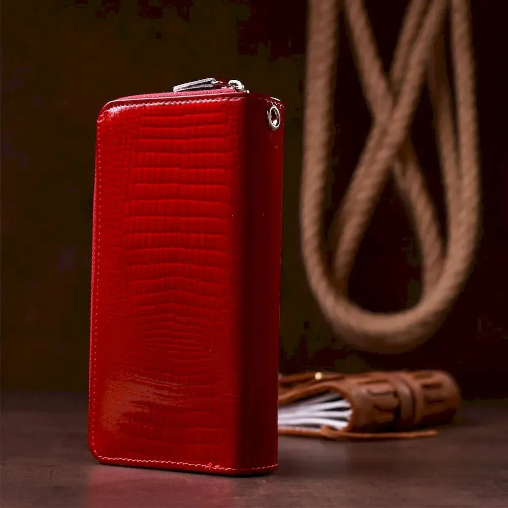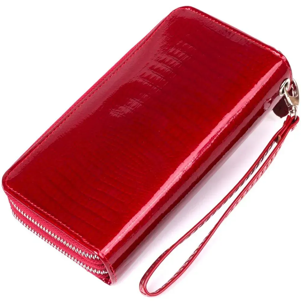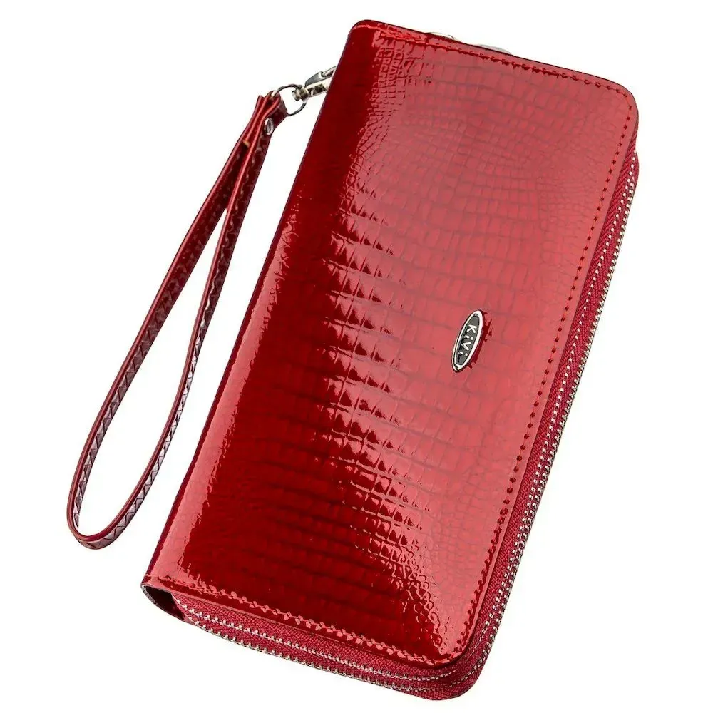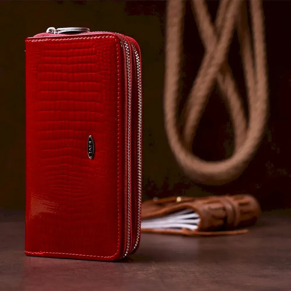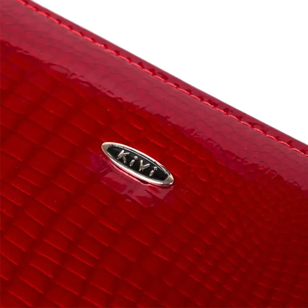 Гаманець жіночий з екошкіри на дві блискавки лаковий KIVI Хамелеон 19025 Червоний