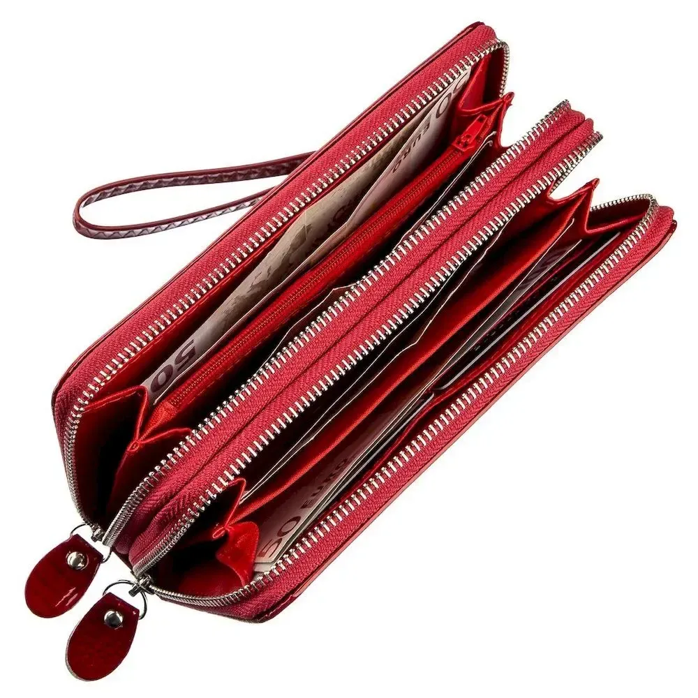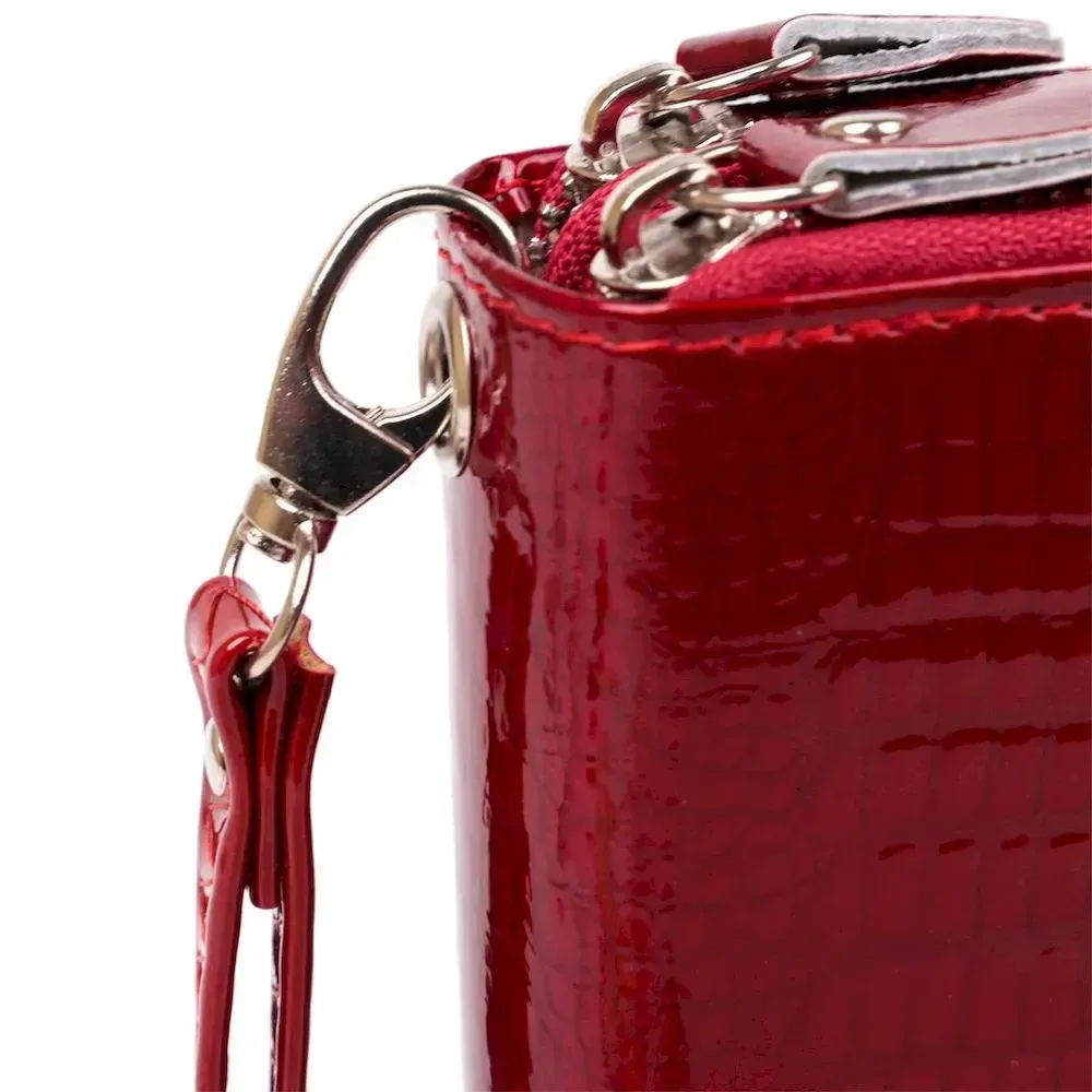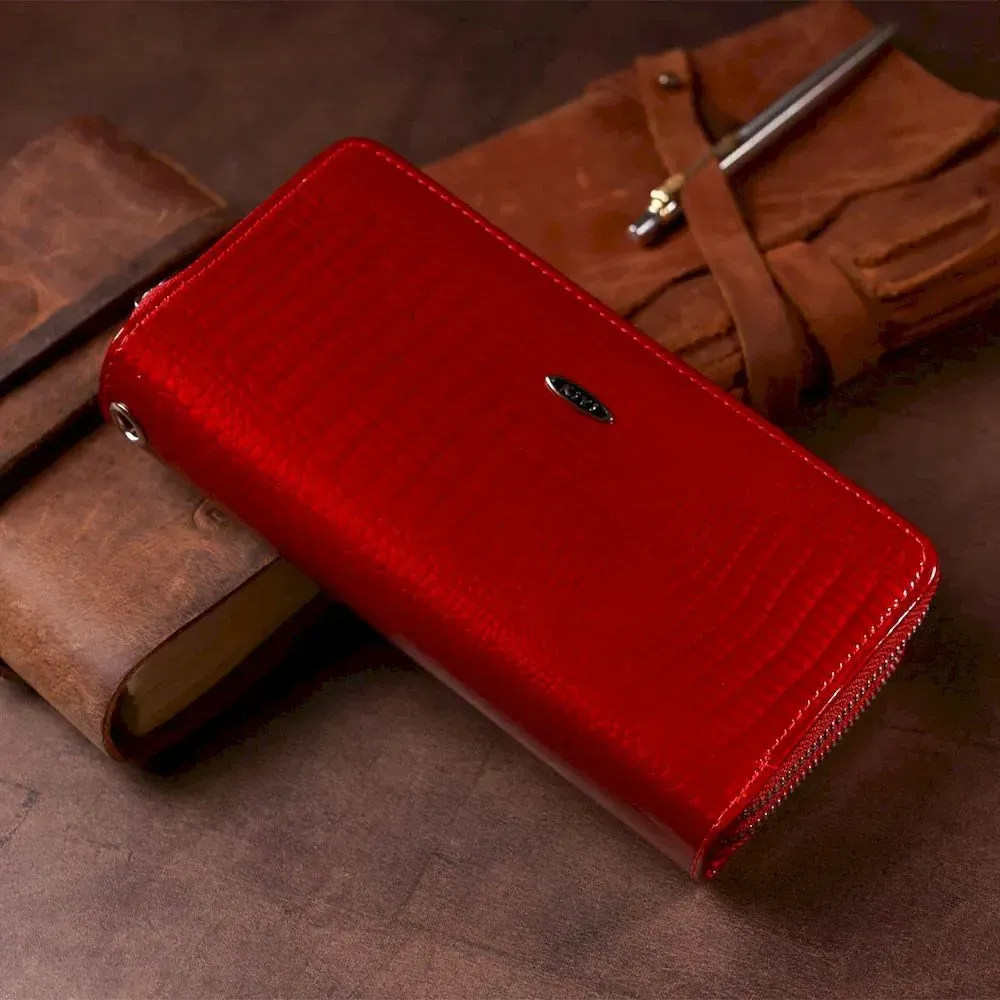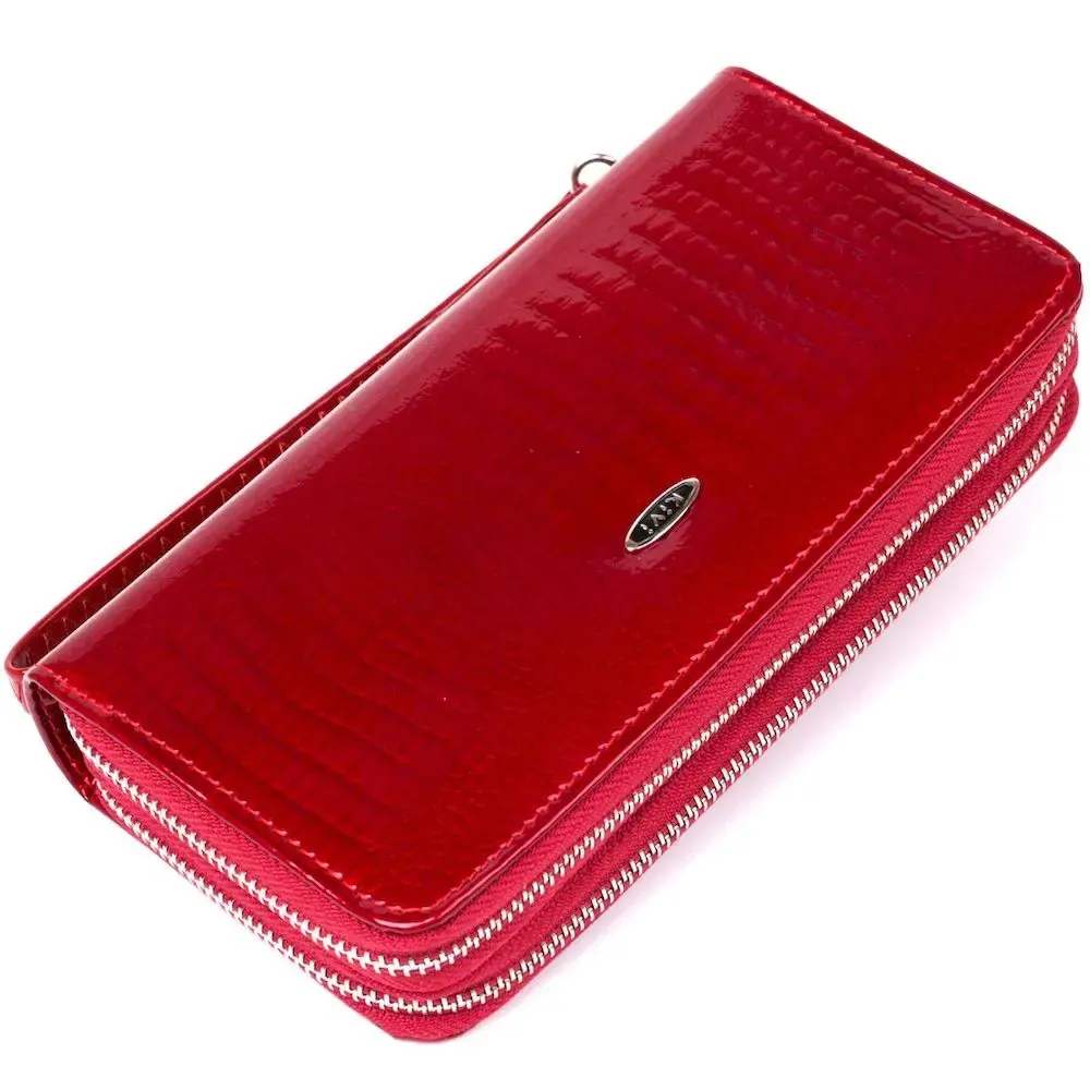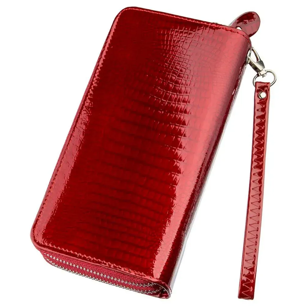 Гаманець жіночий з екошкіри на дві блискавки лаковий KIVI Хамелеон 19025 Червоний