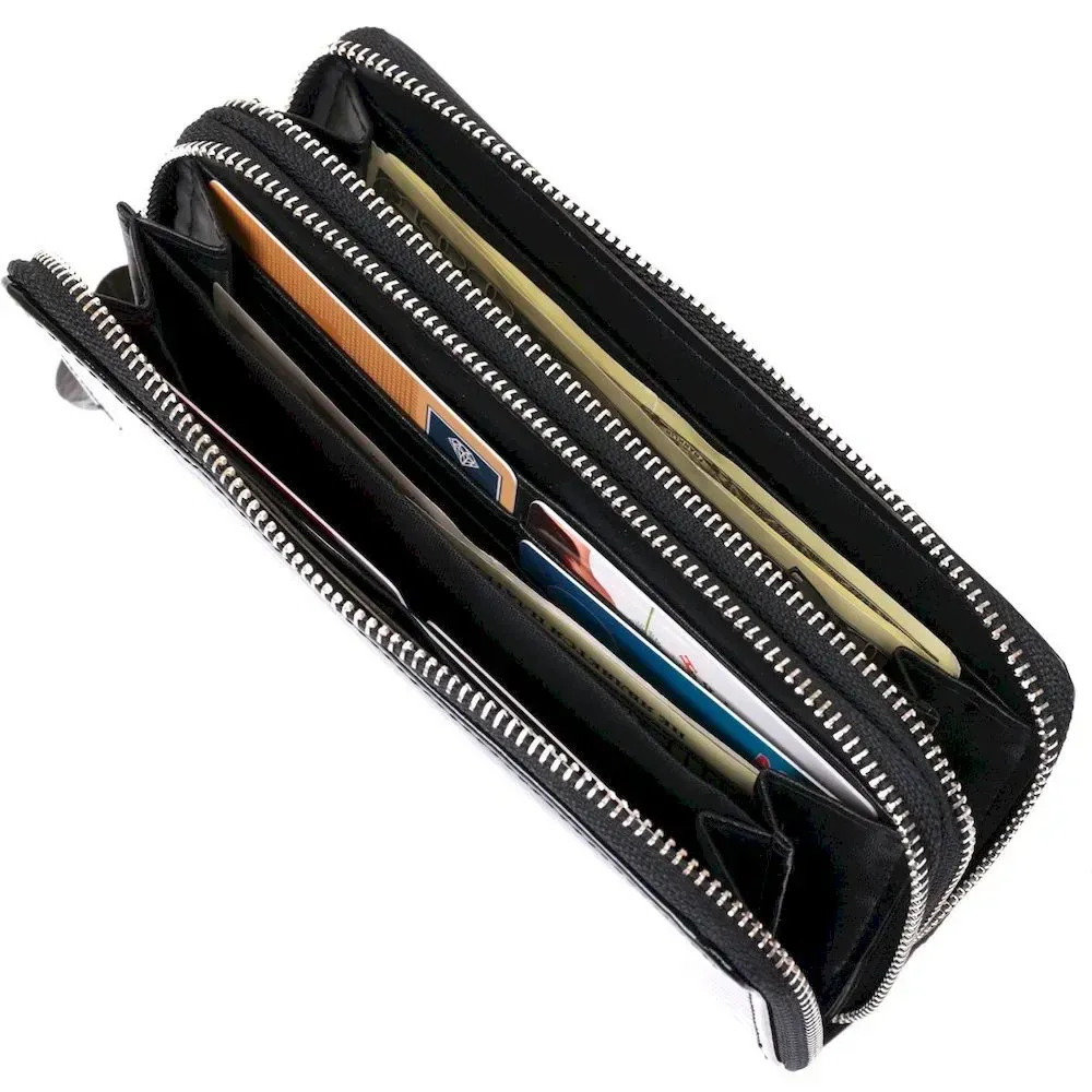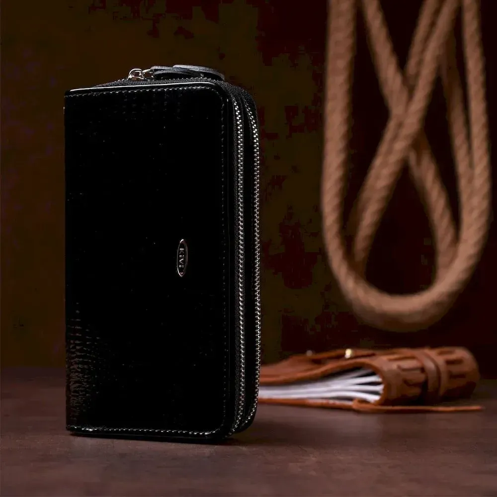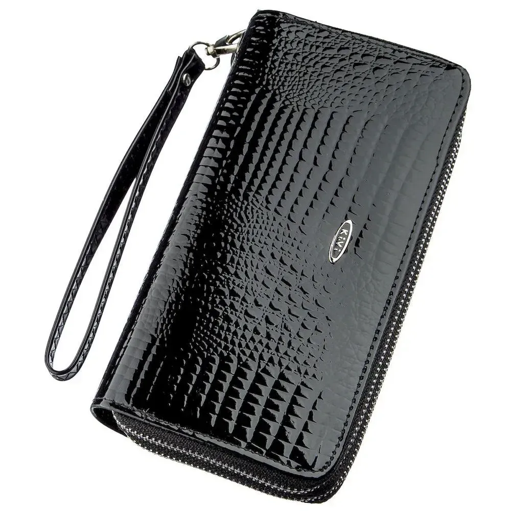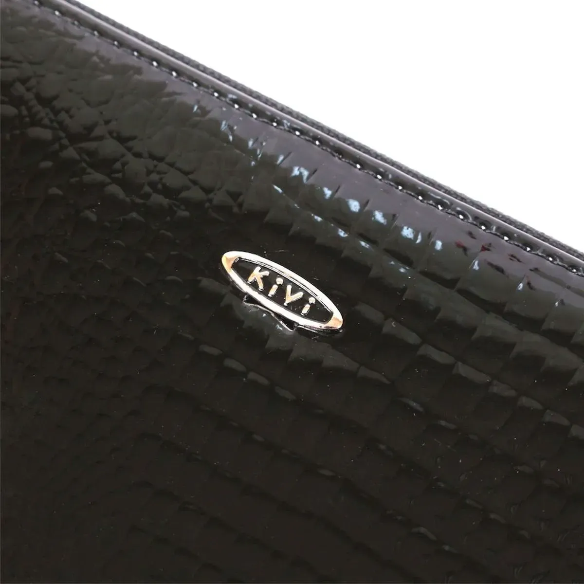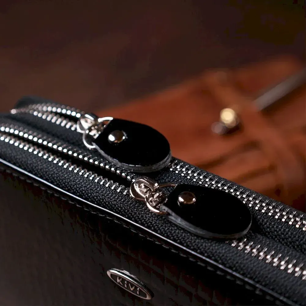 Гаманець жіночий з екошкіри на дві блискавки лаковий KIVI Хамелеон 19026 Чорний
