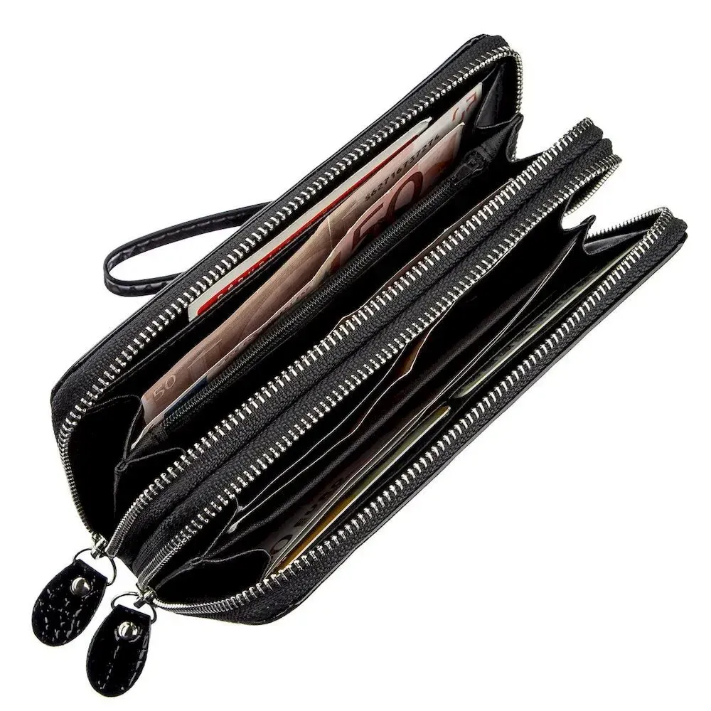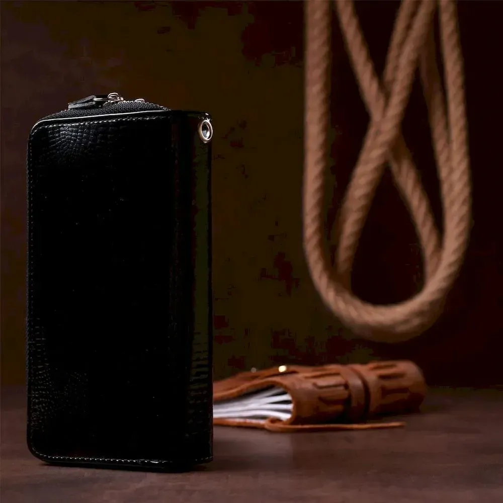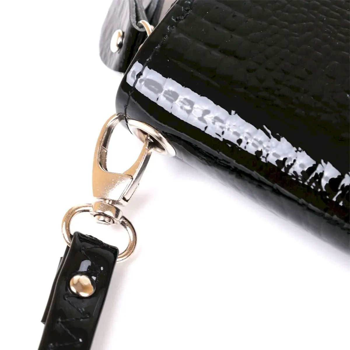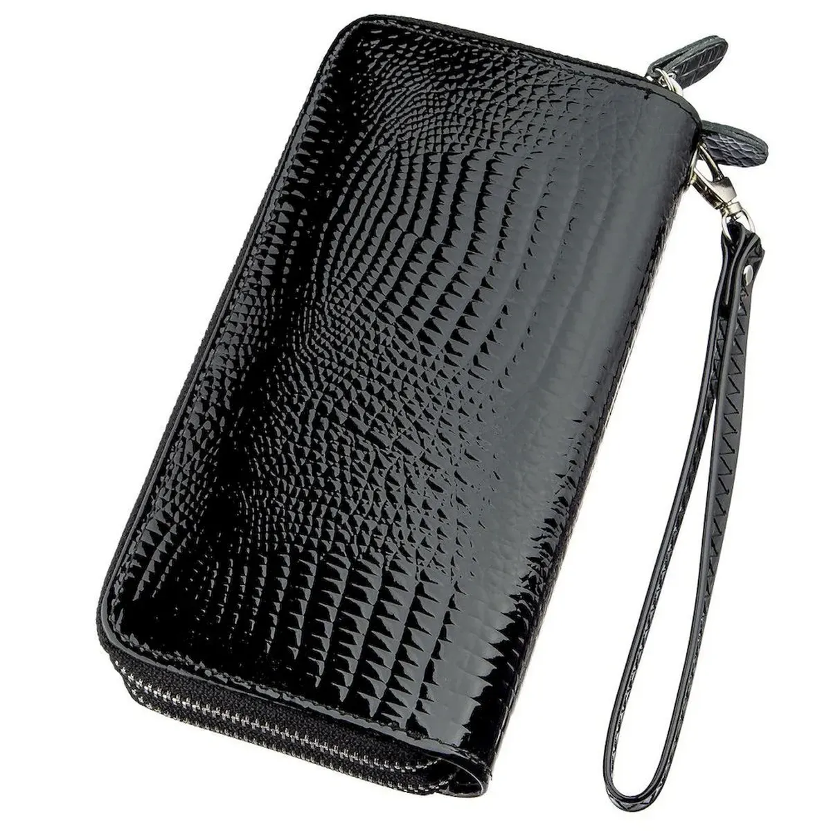 Гаманець жіночий з екошкіри на дві блискавки лаковий KIVI Хамелеон 19026 Чорний