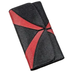 Гаманець жіночий з натуральної шкіри морського схилу з червоними смужками STINGRAY LEATHER 18652 Чорний