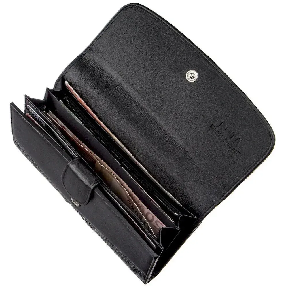 Гаманець жіночий з натуральної шкіри морського схилу з синіми смужками STINGRAY LEATHER 18653 Чорний