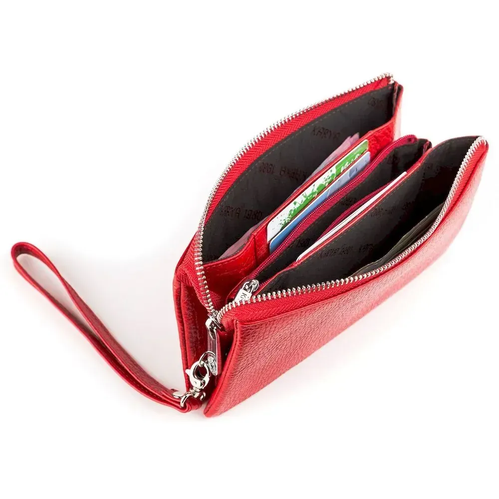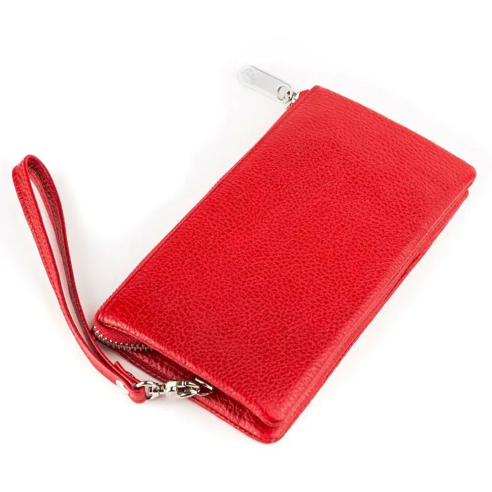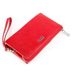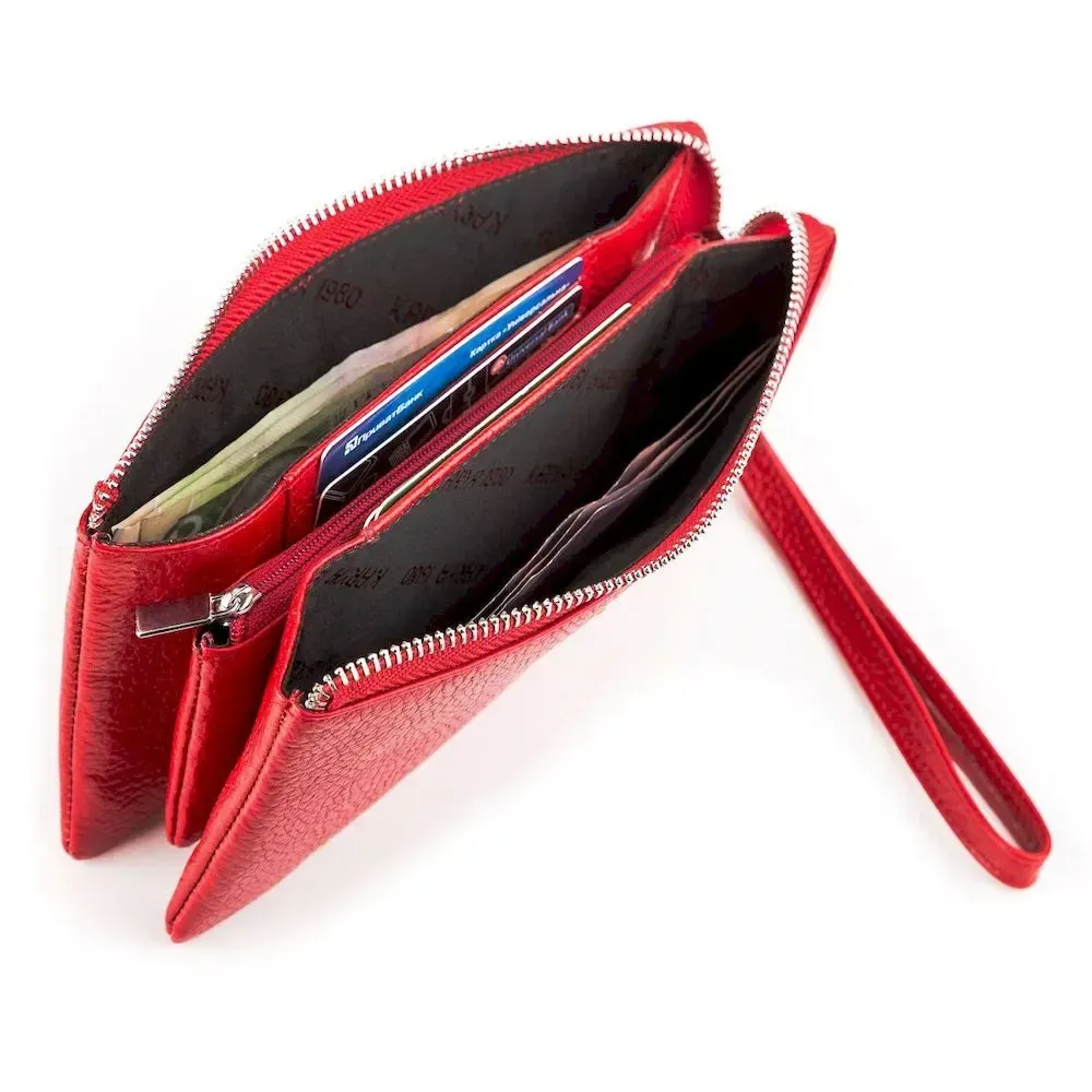 Оригінальний гаманець-клатч червоного кольору, з натуральної м'якої шкіри - “флотар”. Аксесуар закривається на блискавку, можна носити як на кисті за допомогою ремінця, так і в руці. Виріб упакований у фірмову коробочку, тому вам не доведеться думати, у що упаковати свій подарунок.
