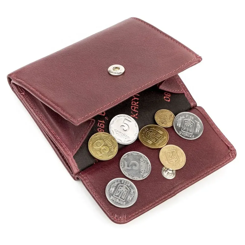 - монетниця на кнопці із зовнішнього боку;