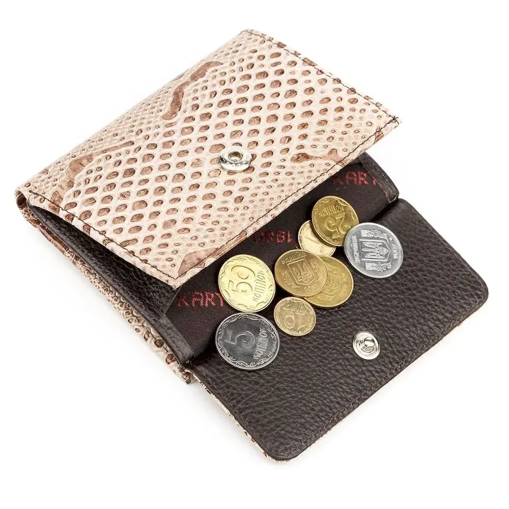 Стильний жіночий гаманець, з натуральної фактурної шкіри під рептилію. Дуже гарний та компактний аксесуар, який підійде жінці, яка цінує зручність та якість.