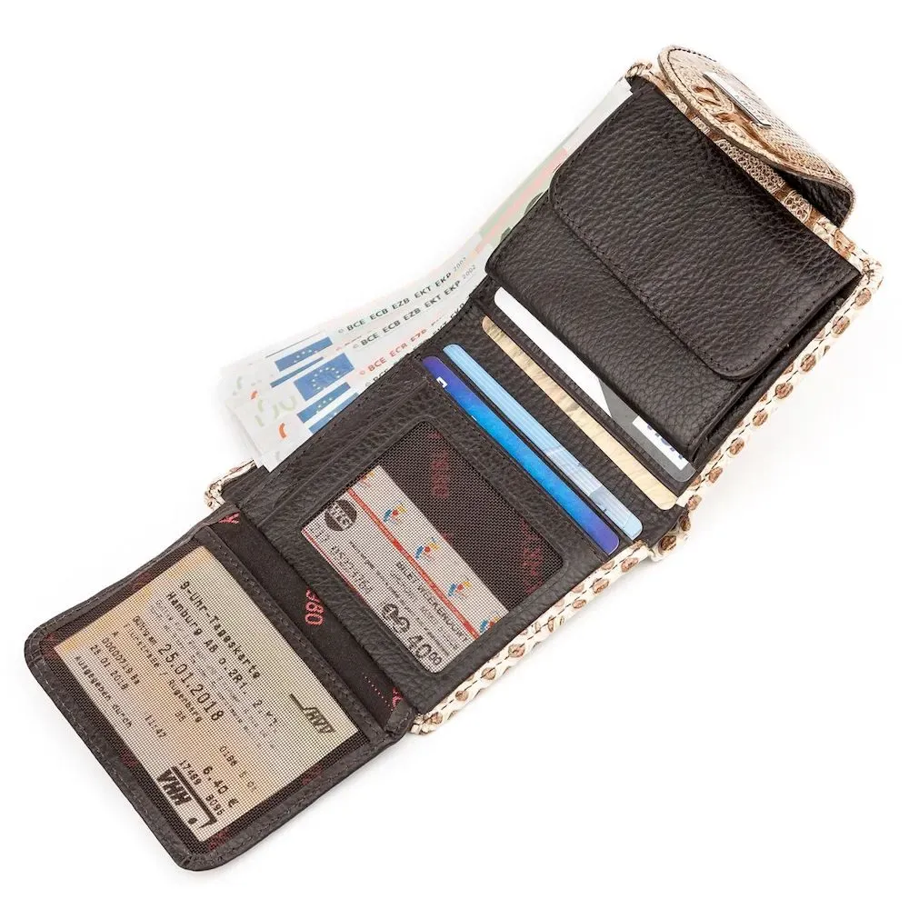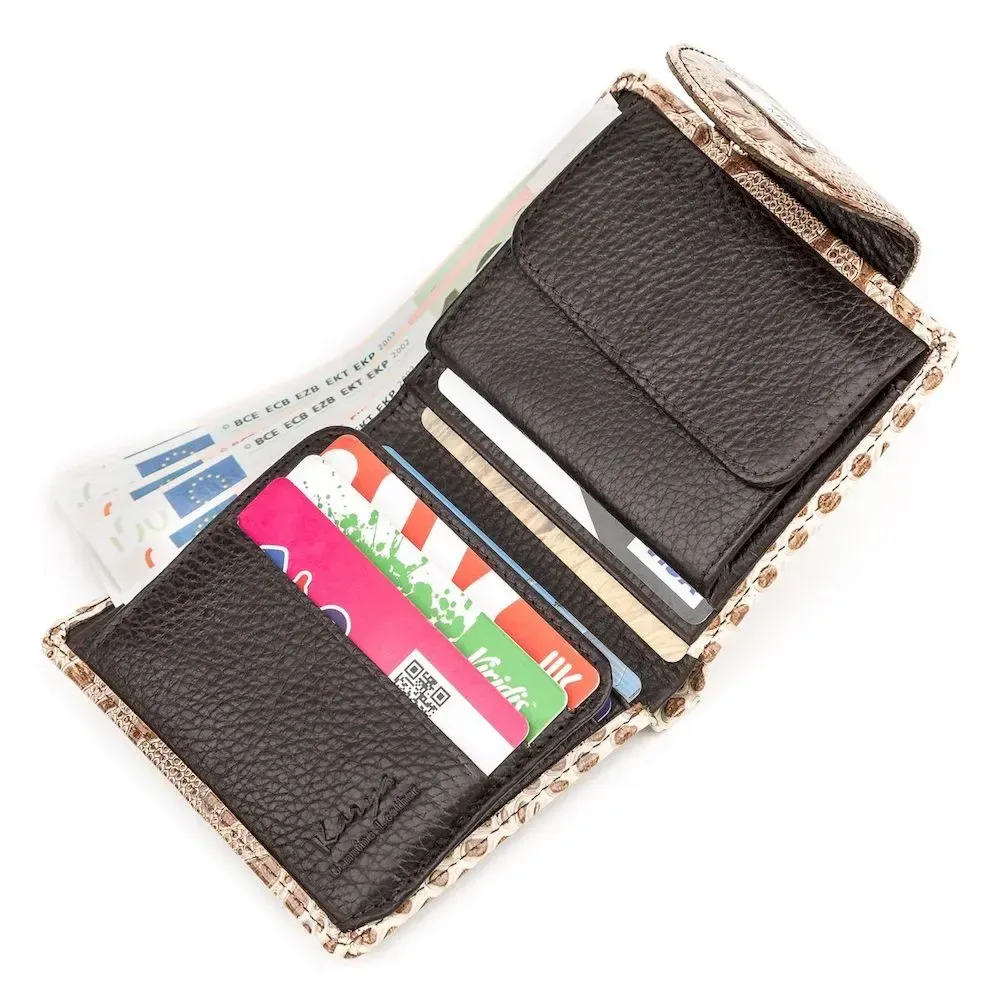 Стильний жіночий гаманець, із фактурної натуральної шкіри під рептилію. Дуже стильний та компактний аксесуар, який підійде жінці, яка цінує зручність та якість. Відмінна ідея для подарунка, яка не залишить байдужою жодну жінку.