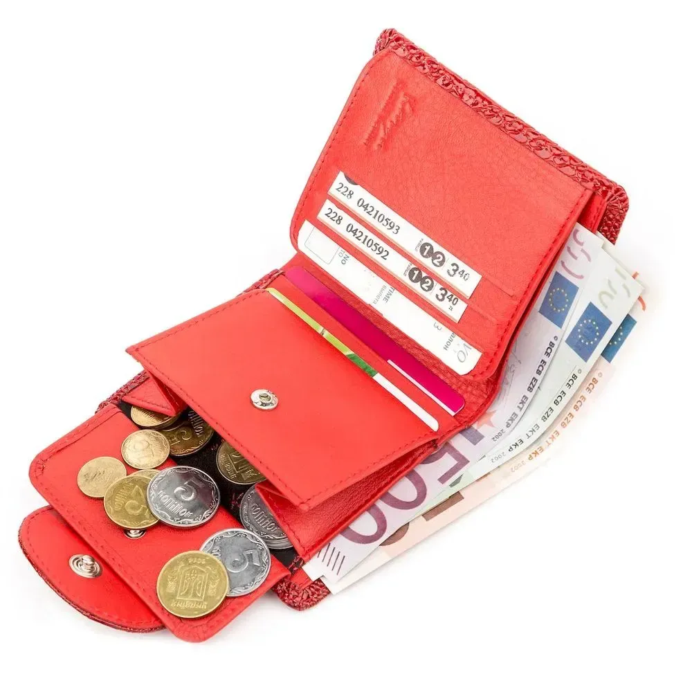 Яскравий жіночий гаманець, з фактурної натуральної шкіри під рептилію. Дуже стильний та компактний аксесуар, який підійде жінці, яка цінує зручність та якість.