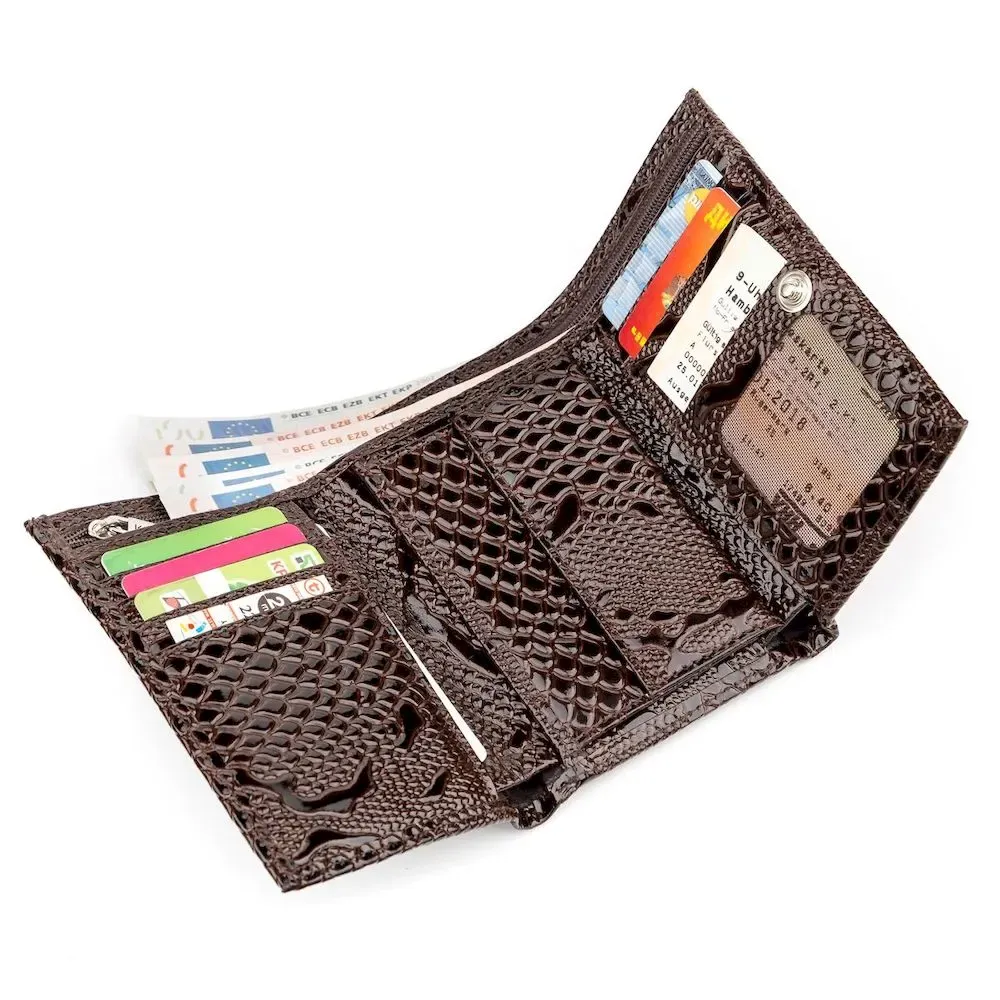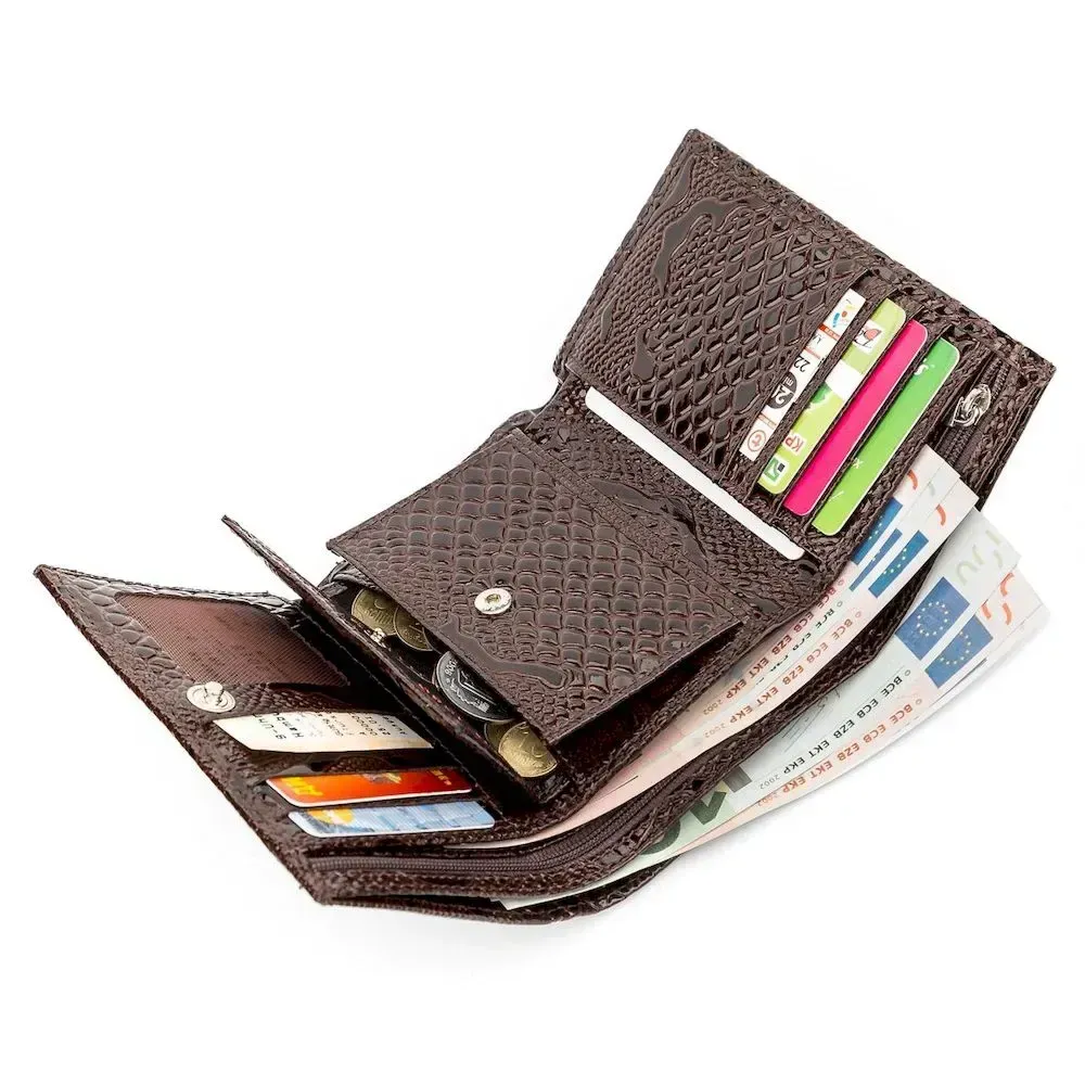 Гарний жіночий гаманець, з фактурної натуральної шкіри під рептилію. Дуже акуратний та компактний аксесуар, який підійде жінці, яка цінує зручність та якість.
