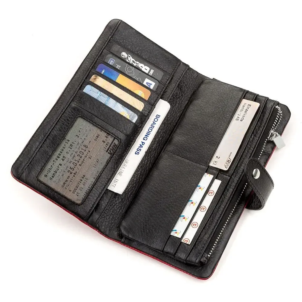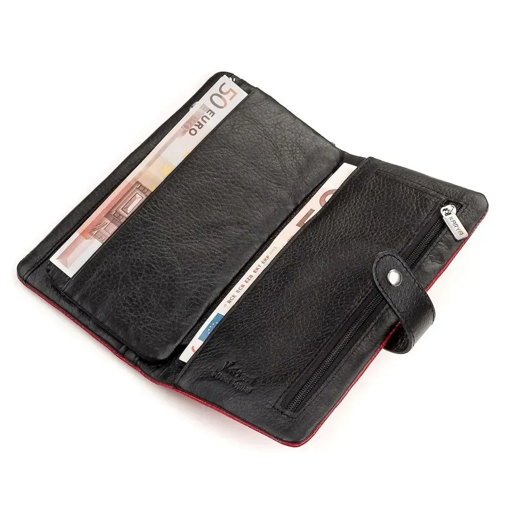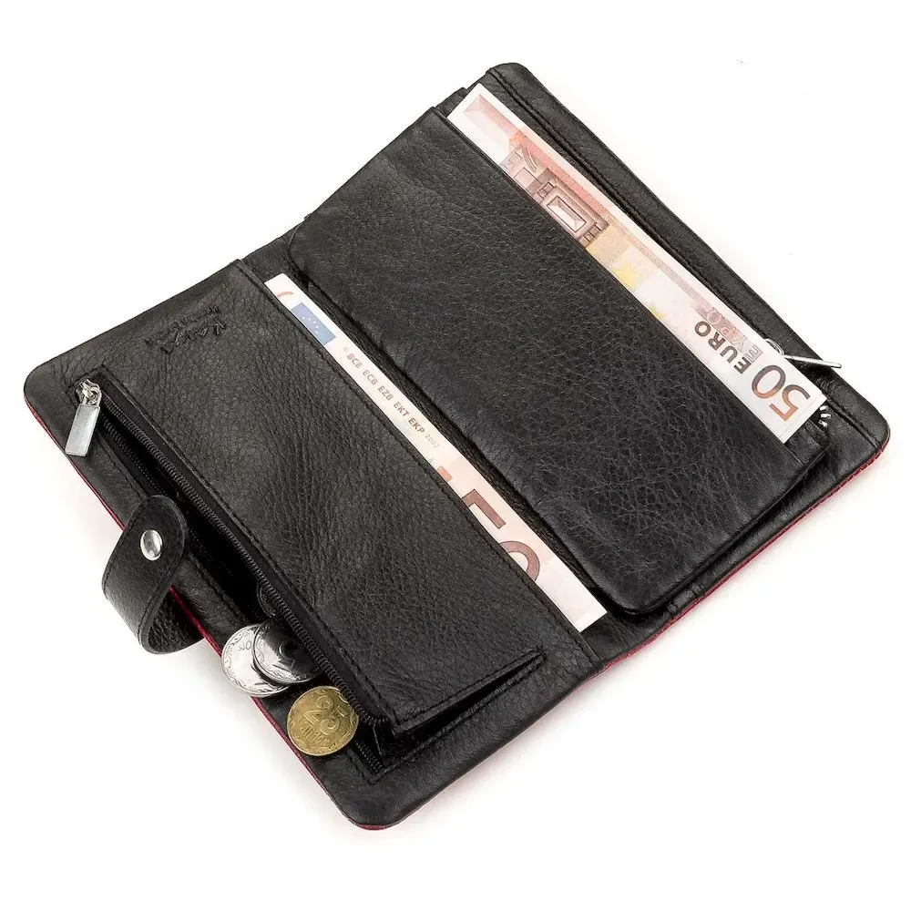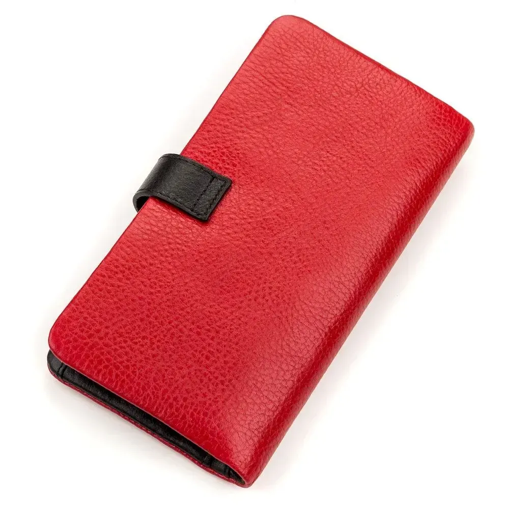 Вертикальний жіночий гаманець з високоякісної натуральної фактурної шкіри - “флотар”. Дуже красивий та стильний аксесуар, який складається з поєднання двох кольорів шкіри: червоної зовні та чорної всередині. Виріб буде оригінальним доповненням до стильного образу сучасної жінки.