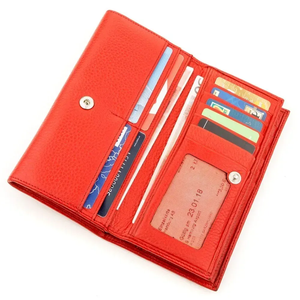Модель виконана зі шкіри турецької якості. Відточена технологія виробництва та використання якісних матеріалів позитивно впливає на термін служби портмоне. Яскравий червоний колір гаманця ідеально виділить вас із натовпу і підкреслить ваше почуття стилю, а велика кількість відділень вмістить усі ваші дрібниці.