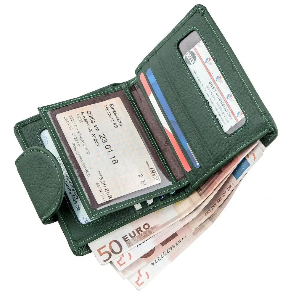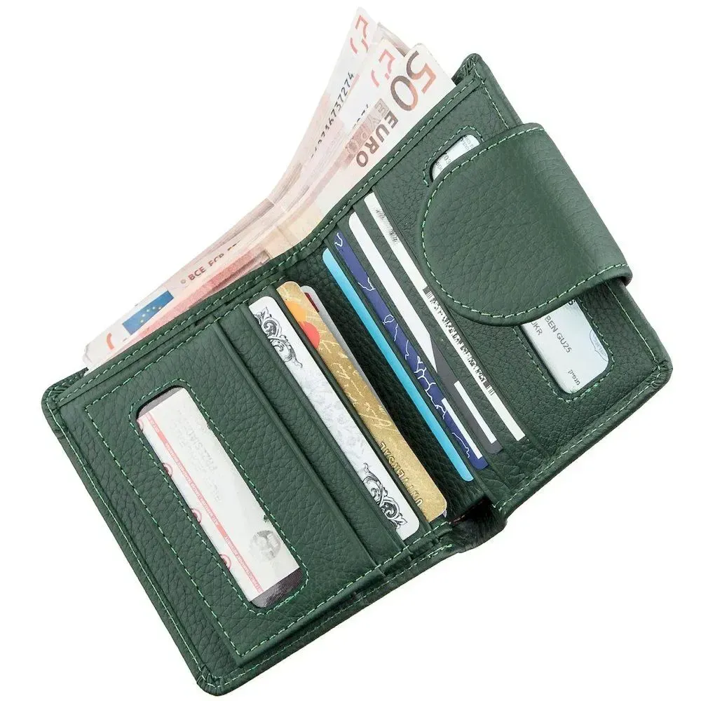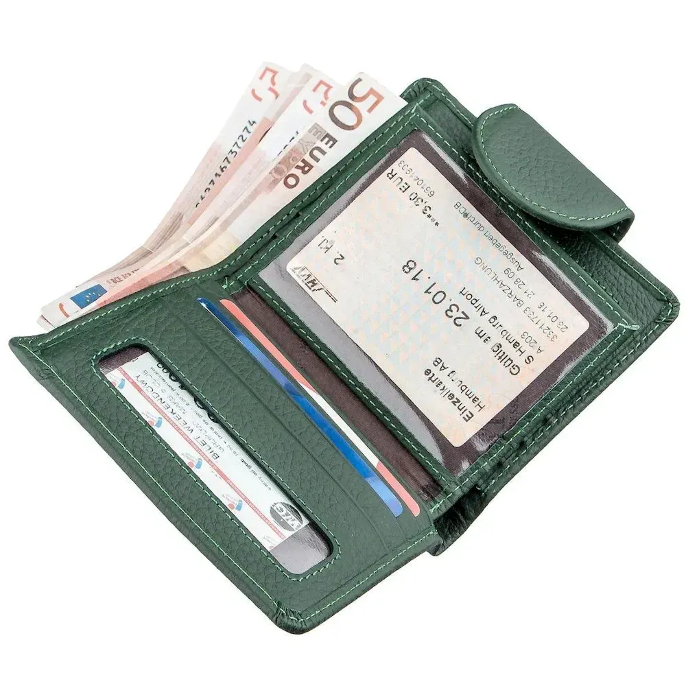 Невеликий жіночий гаманець з натуральної шкіри. При своєму компактному розмірі аксесуар досить функціональний. По краях прошитий гаманець рівним зеленим рядком. М'яка та якісна шкіра та доступна вартість роблять модель особливо популярною. Аксесуар упакований у картонну фірмову коробку та стане чудовим подарунком для будь-якої дівчини.