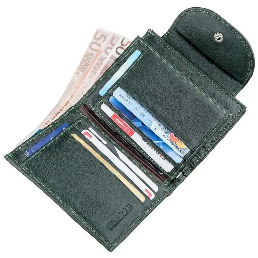 Компактний аксесуар, виготовлений натуральної шкіри здатний на три додавання.Строгий зелений червоний колір, невеликі розміри і прекрасна функціональність виділяють аксесуар з інших, а внутрішня начинка більш ніж достатня - відділень для купюр і банківських карт вистачає для комфортного використання Також аксесуар доповнений кишенею для монет з надійною блискавкою.