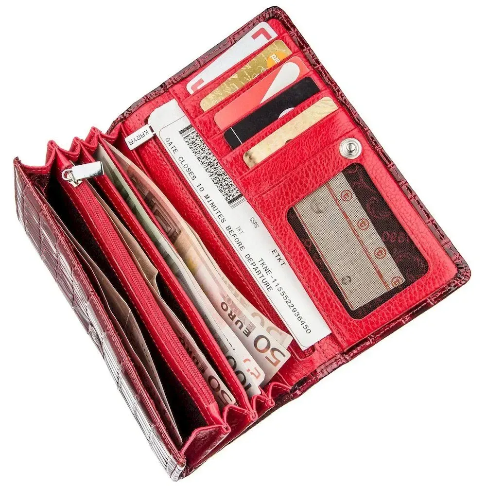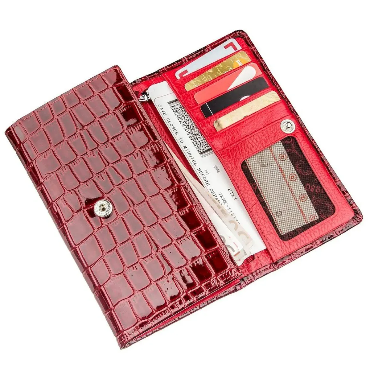 Жіноча гаманець червоного кольору із натуральної шкіри з тисненням під екзотичну шкіру. Усередині виріб виконаний з натуральної шкіри у поєднанні з міцним текстилем. Закривається гаманець на кнопку. Впевнені, що з таким гаманцем ви не залишитеся поза увагою. Виріб поміститься у жіночу сумку. Лакове покриття гаманця захистить модель від зносу та подряпин. Виріб стане чудовим подарунком для будь-якої дівчини. У комплекті до моделі йде фірмова картонна упаковка.