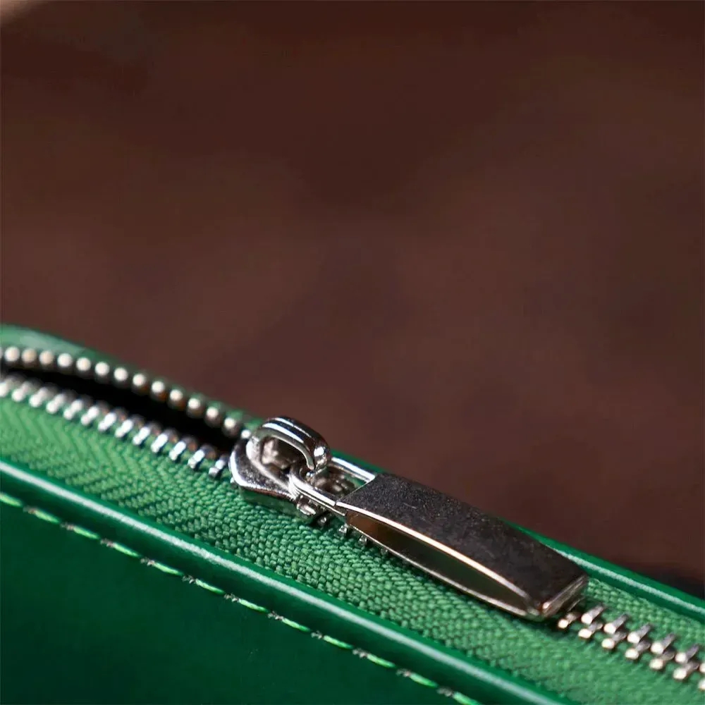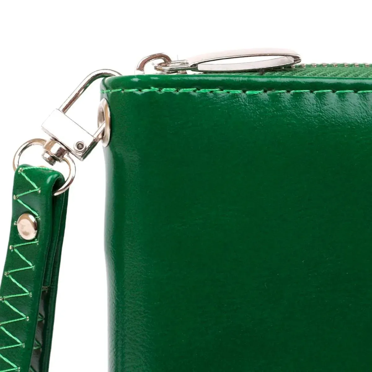 Дана модель – вибір класиків. Витриманий дизайн та зелений колір у поєднанні з доступною вартістю роблять гаманець більш привабливим. Аксесуар підійде під будь-який стиль та образ. Ви можете носити цей гаманець як клатч. Виконана модель у гладкій екошкірі, яка блищатиме на сонці. Усередині гаманець виготовлений з екошкіри у поєднанні із міцним текстилем. Доповнює дизайн аксесуару металевого лого бренду на лицьовій стороні. Новинка вже заслужила своєї популярності серед наших клієнтів.