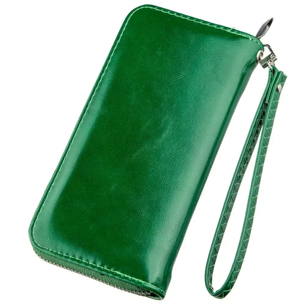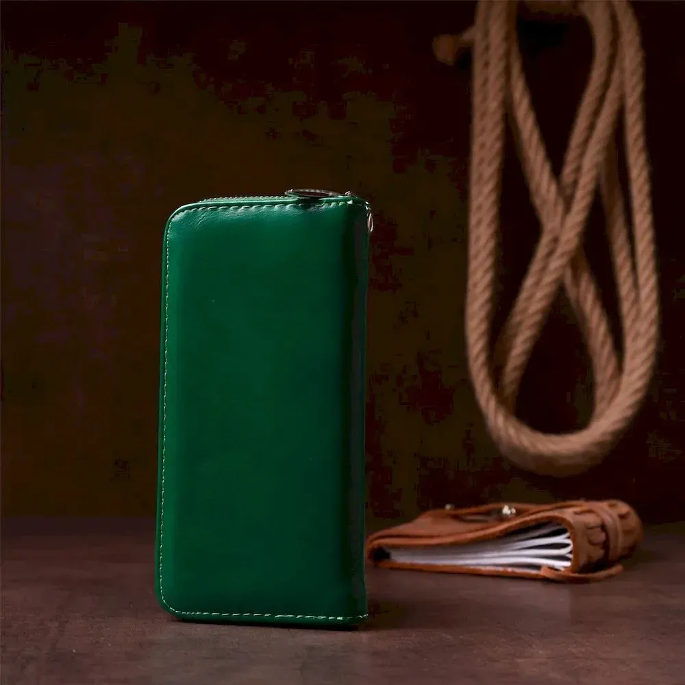 Гаманець жіночий на одну блискавку з екошкіри гладкий KIVI 19034 Зелений