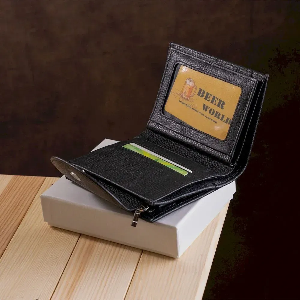Представлений гаманець має оптимальний набір відділень для паперових купюр і осередків для пластикових карток, володіючи також кишенею для дрібниці з якісною блискавкою у вигляді закриваючого механізму, виготовляється аксесуар з натуральної шкіри в класичному чорному кольорі, доповнюючись фурнітурою в срібному відтінку. br />