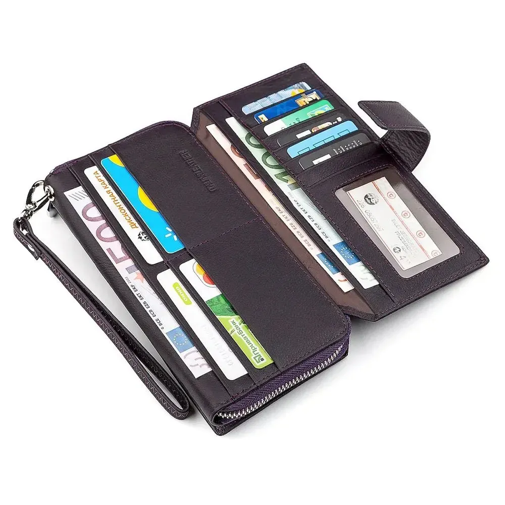 Багатофункціональний, шкіряний жіночий гаманець. У такий аксесуар легко помістяться купюри будь-яких розмірів, кредитні картки та багато іншого, що потрібно сучасній дівчині. Якщо Ви шукаєте подарунок дівчині, то цей гаманець чудове тому рішення, тому що він поставляється в красивій коробочці.