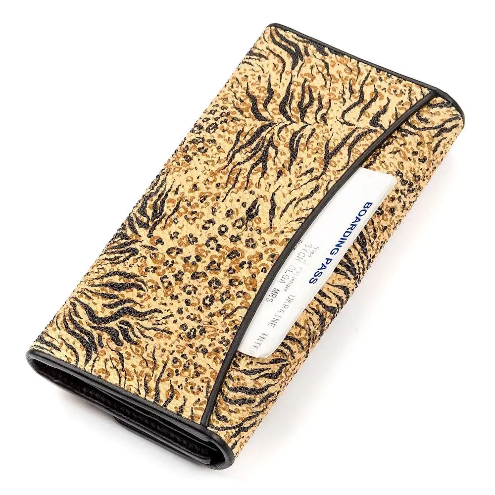 Гаманець з гарним принтом з натуральної шкіри морського ската, яка має фантастичну фактуру та красу. Її витонченість підкреслює кістяний залишок від спинного плавця, схожий на блок перлин. Найбільша “перлина” перебуває у центрі, і з ній визначають вік ската. Весь простір шкіри вкритий сотнями дрібних горбків, різного розміру, які грають на світлі, як невеликі бусинки. Аксесуар обшитий гладкою чорною шкірою. Дуже компактний та зносостійкий аксесуар, який підійде всім цінителям зручності та якості.