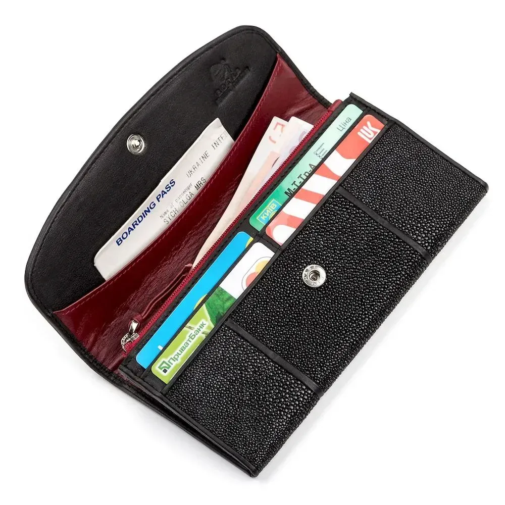 Гаманець жіночий STINGRAY LEATHER 18112 із натуральної шкіри морського ската Чорний