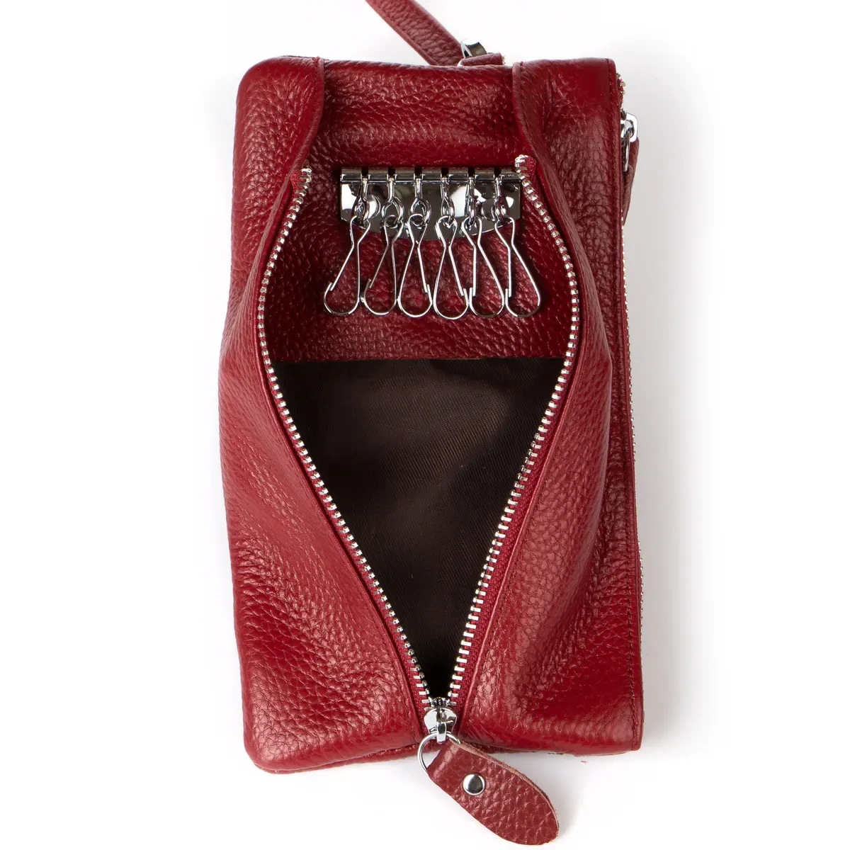 Жіноча шкіряна косметичка – ключниця. Виготовлена з м'якої шкіри. Закривається на блискавку. Одне відділення з боковою відкритою кишенею. На фасаді є велика ключниця на блискавці, а на звороті кишеня на блискавці.