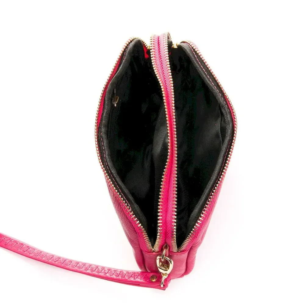 Жіноча шкіряна косметичка-клатч. Два відділення, які закриваються на блискавці. Усередині відділень є одна кишеня на блискавці і одна відкрита кишеня. У комплекті знімний кистьовий ремінець. Розмір (см.) 20*10*5
