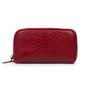 Женская кожаная косметичка. Закрывается на молнию. Внутри находится двойное отделение, разделенное карманом-перегородкой на молнии и боковой открытый карман.