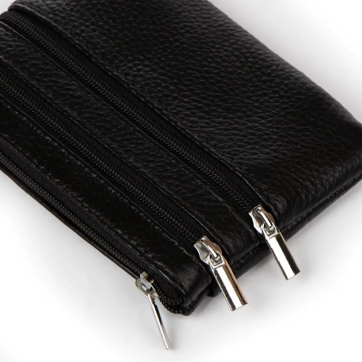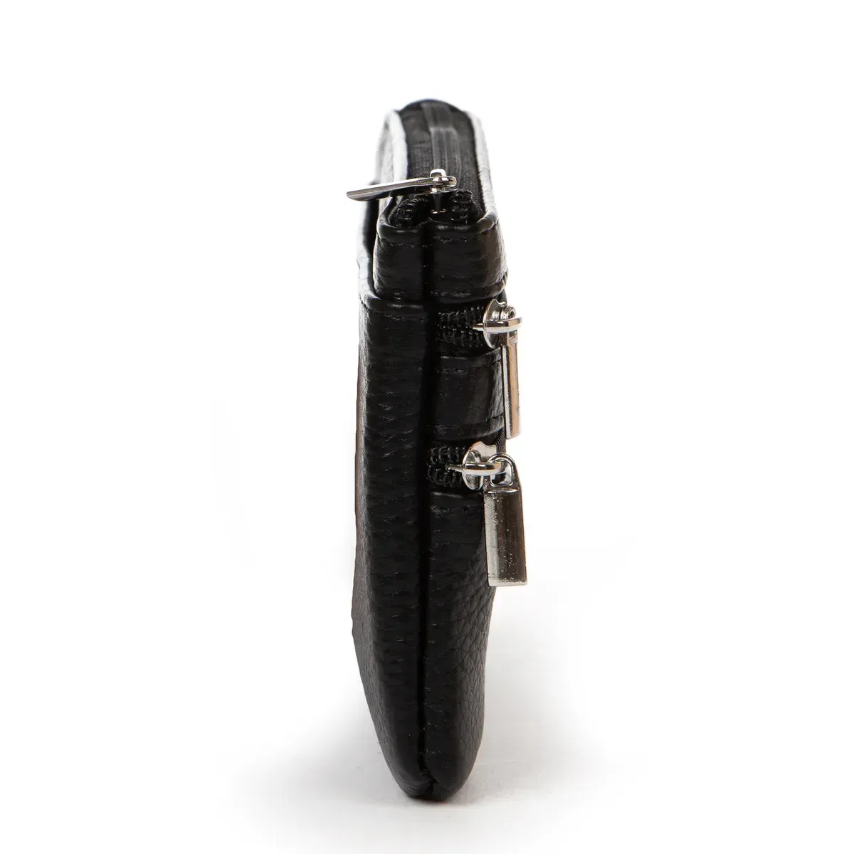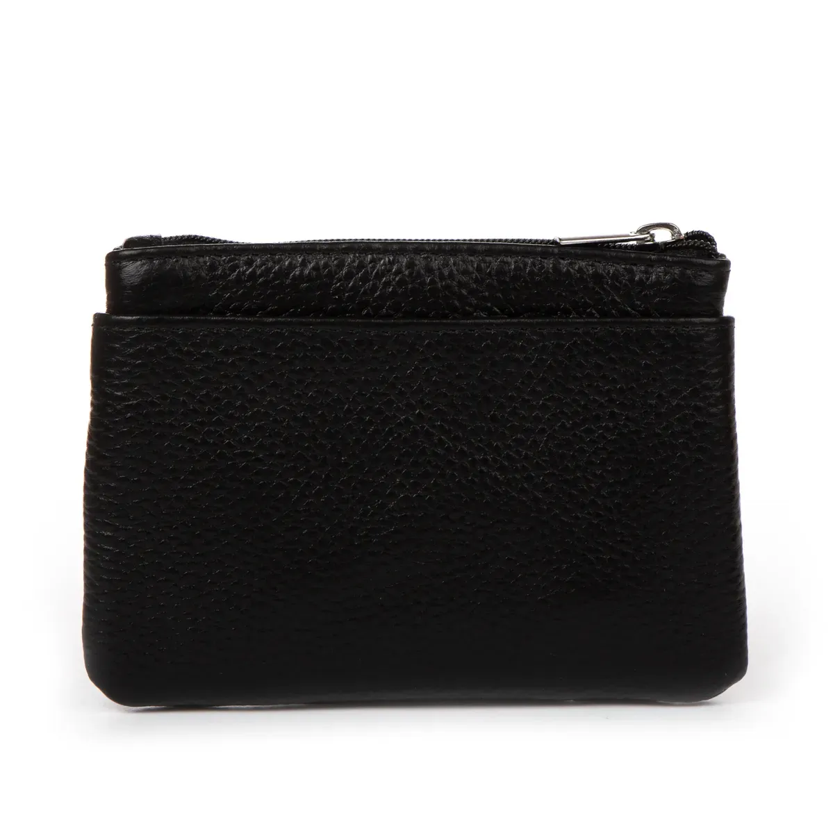 Жіноча шкіряна косметичка – ключниця. Одне відділення для ключів закривається на блискавку. На фасаді розташовані дві кишені на блискавці, а на звороті одна відкрита кишеня.
