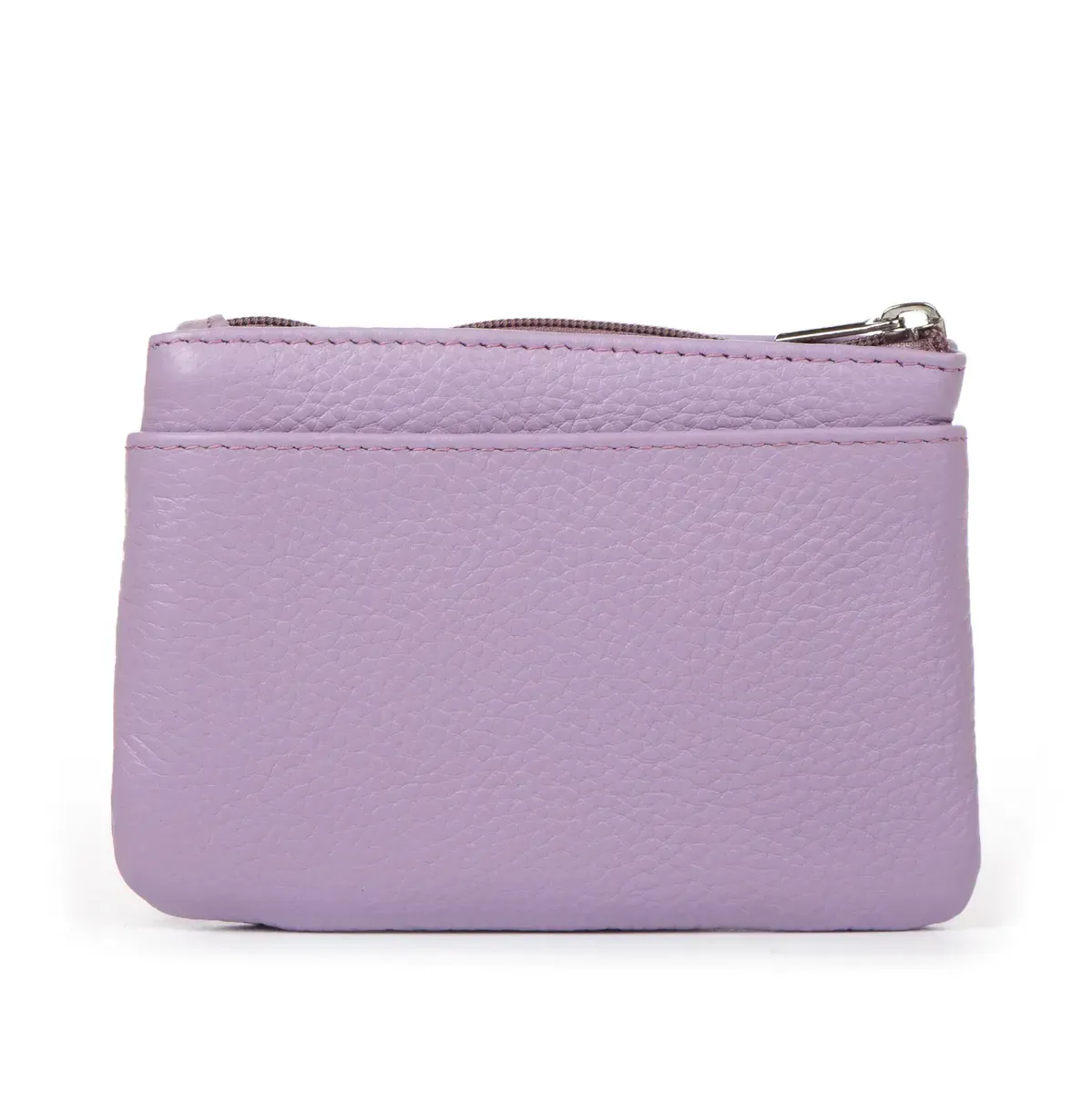 Жіноча шкіряна косметичка – ключниця. Одне відділення для ключів закривається на блискавку. На фасаді розташовані дві кишені на блискавці, а на звороті одна відкрита кишеня.