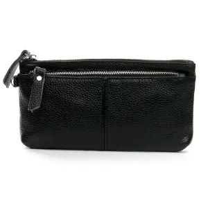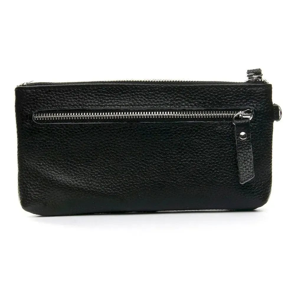 Жіночий шкіряний гаманець-косметичка. Одне основне відділення із кишенею, закривається на блискавку. На фасаді та на звороті є великі кишені на блискавці. У комплекті знімний кистьовий ремінець. Розмір (см.) 20*10*3