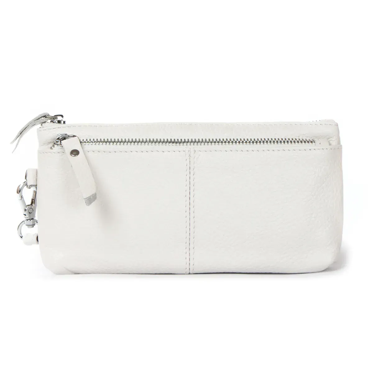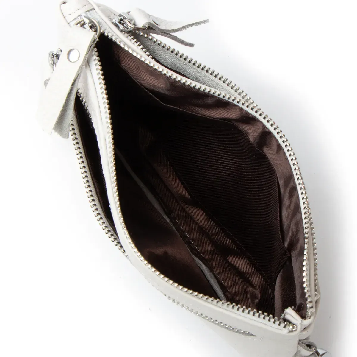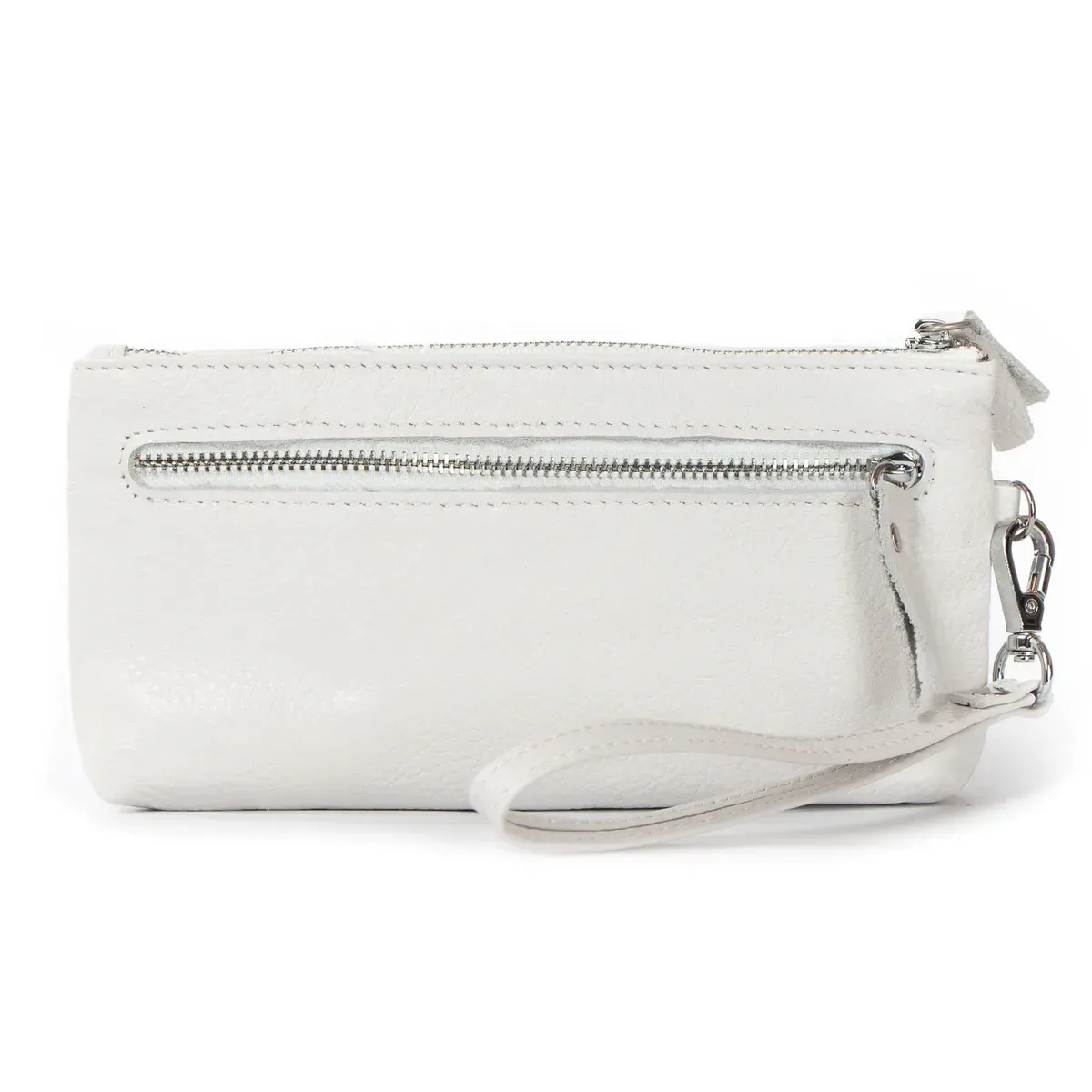 Жіночий шкіряний гаманець-косметичка. Закривається на блискавку. Одне основне відділення з боковою відкритою кишенею. На фасаді та на звороті є великі кишені на блискавці.