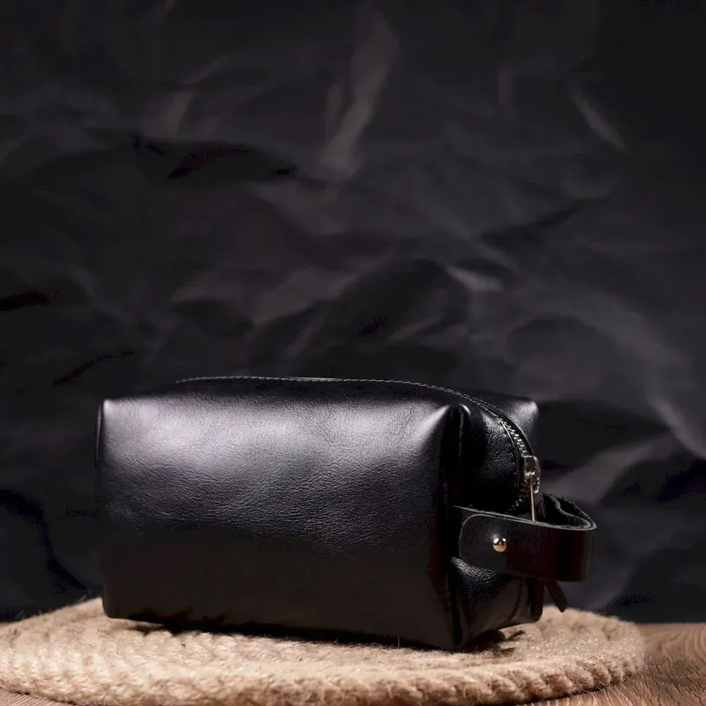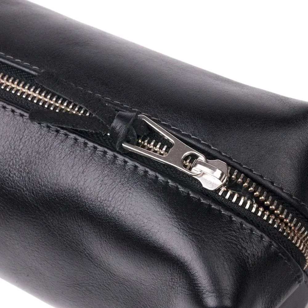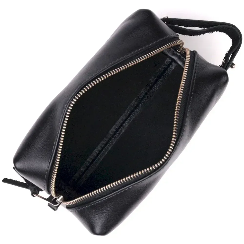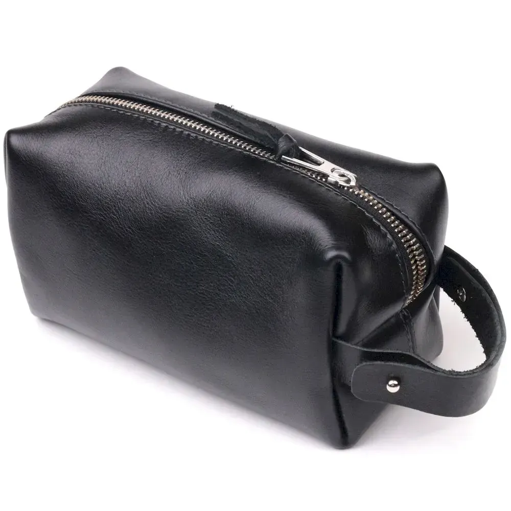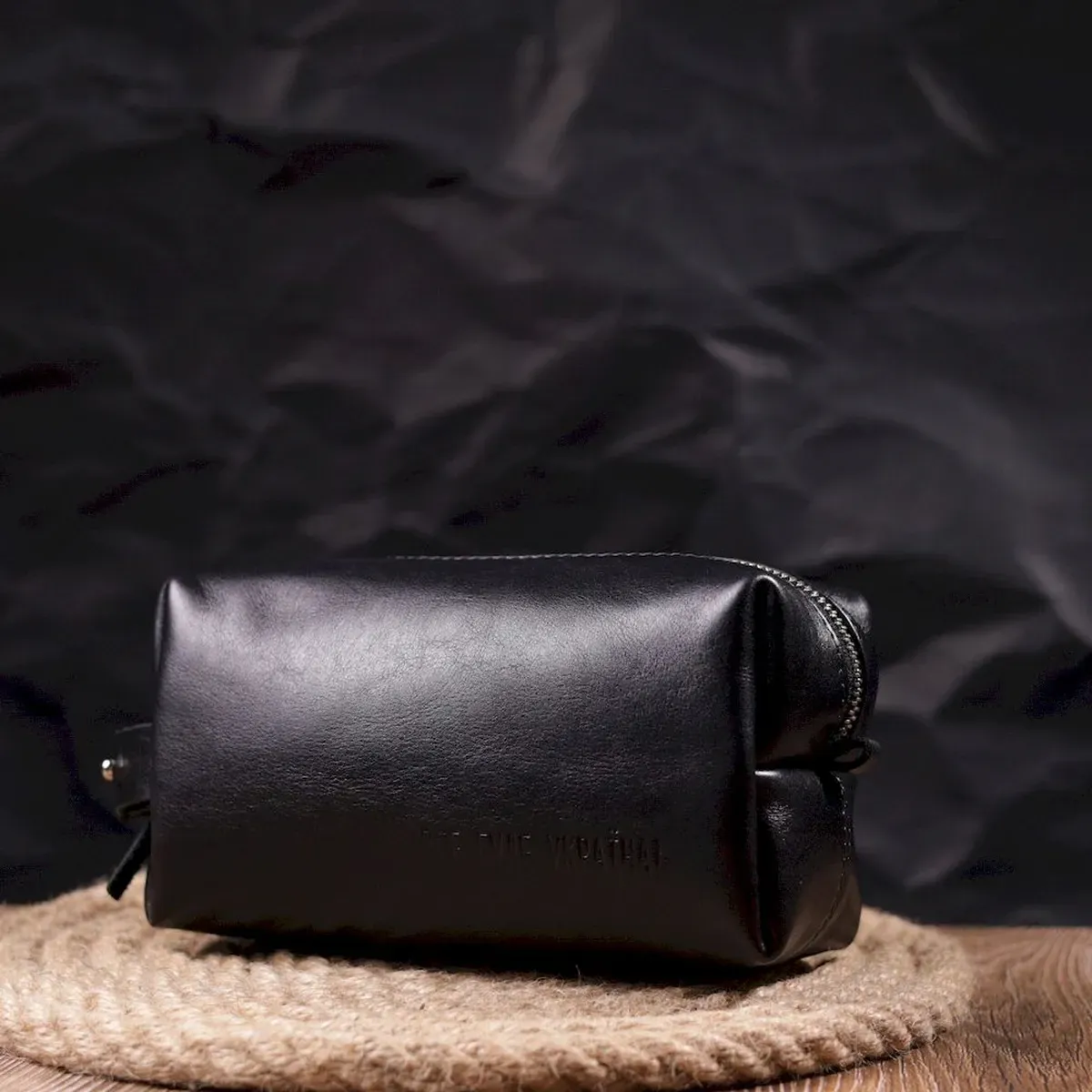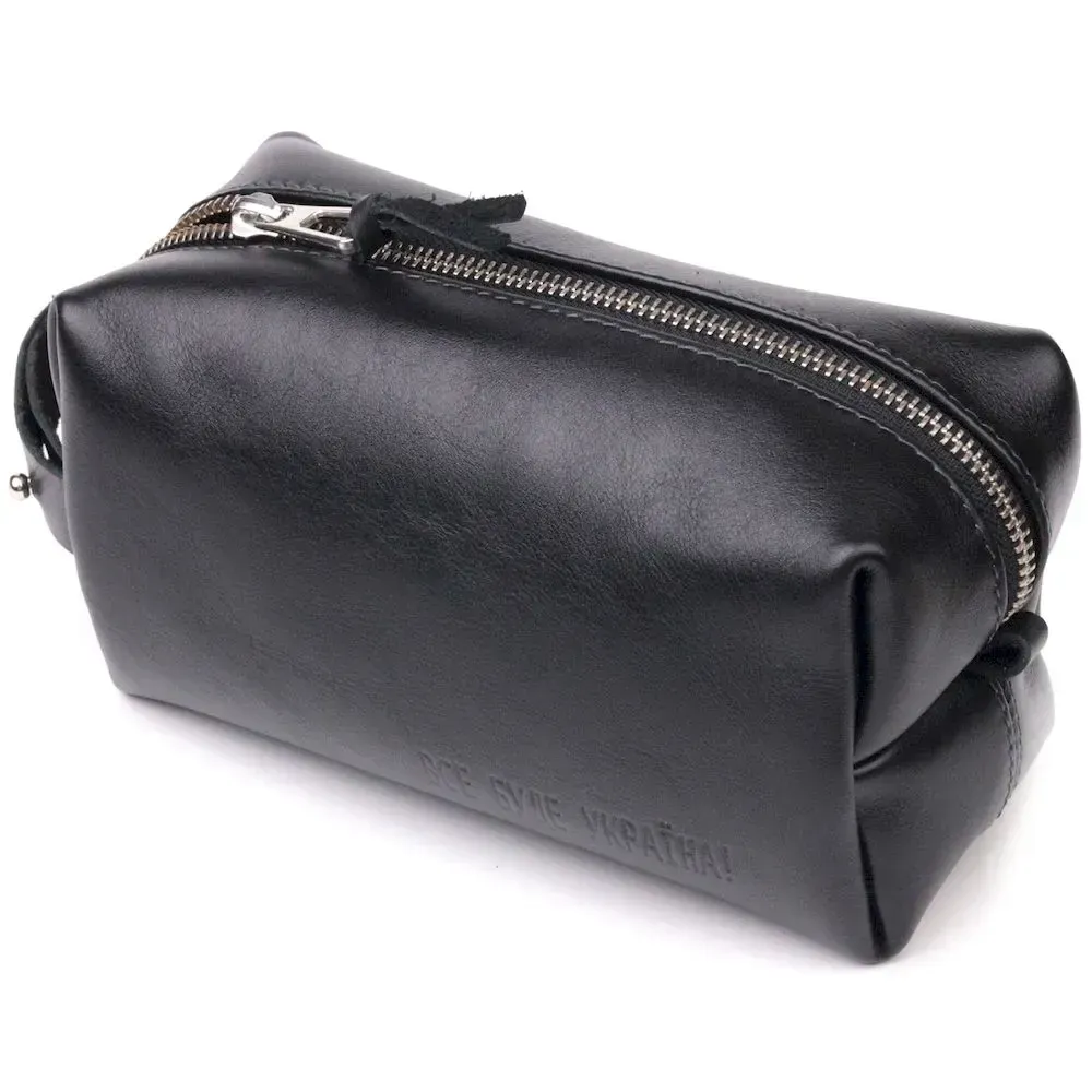 Косметичка середнього розміру з гладкої шкіри на блискавці Україна GRANDE PELLE 16764 Чорна