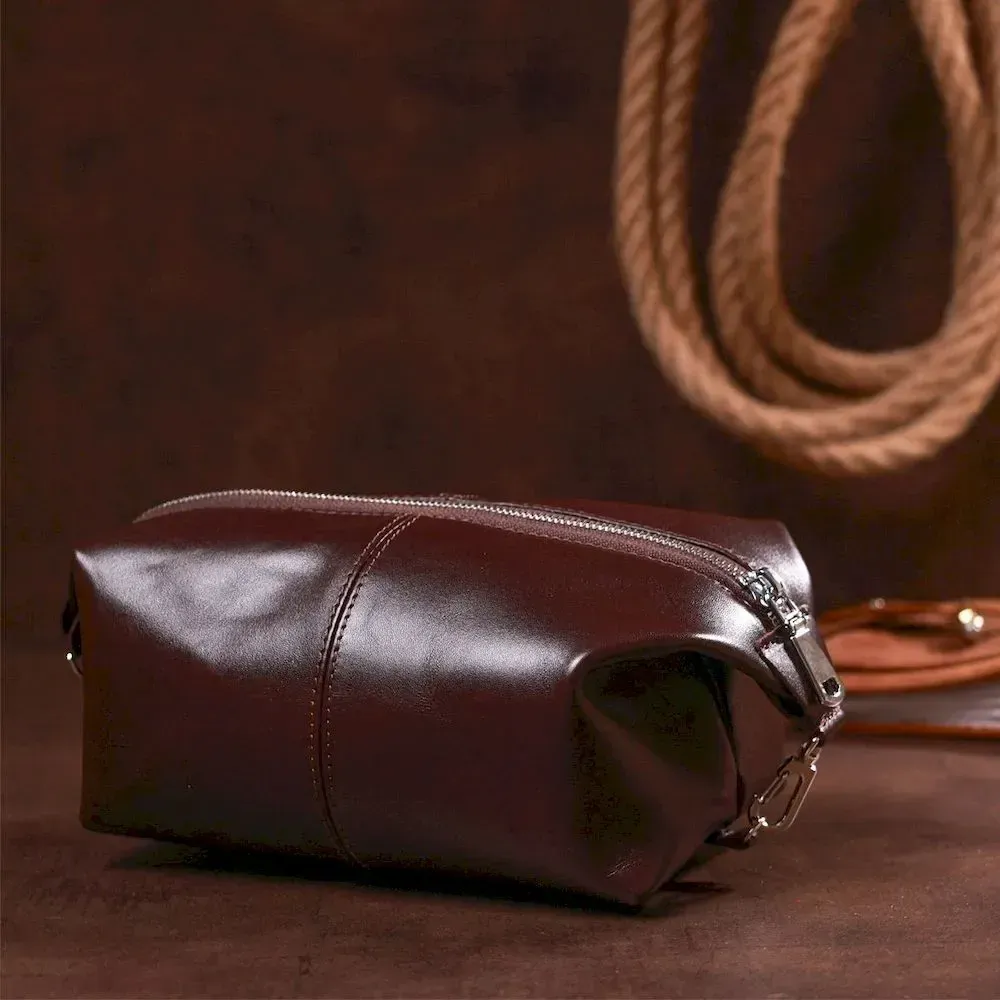 Шкіряна глянсова косметичка Shvigel 16407 Коричневий