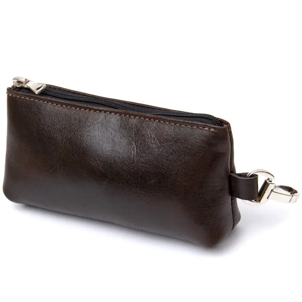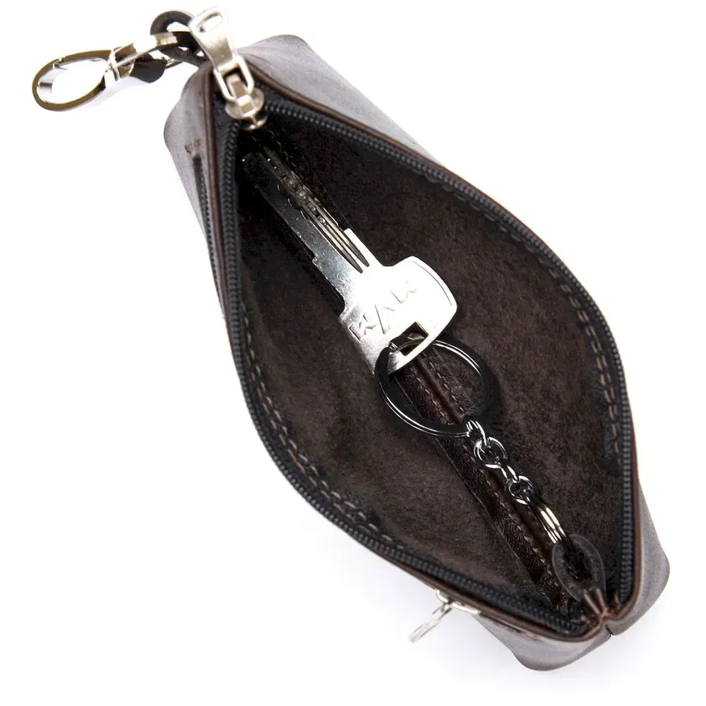 Містка ключниця із натуральної шкіри для Ваших ключів. Має гарний шоколадний колір та срібну фурнітуру. На зовнішній стороні є кишеня на блискавці для будь-якої дрібниці, в тому числі і монет. Упаковано ключницю в оригінальний фірмовий чохол.