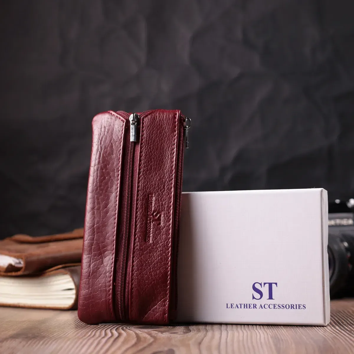 Шкіряна ключниця на блискавці ST Leather 22558 Бордовий