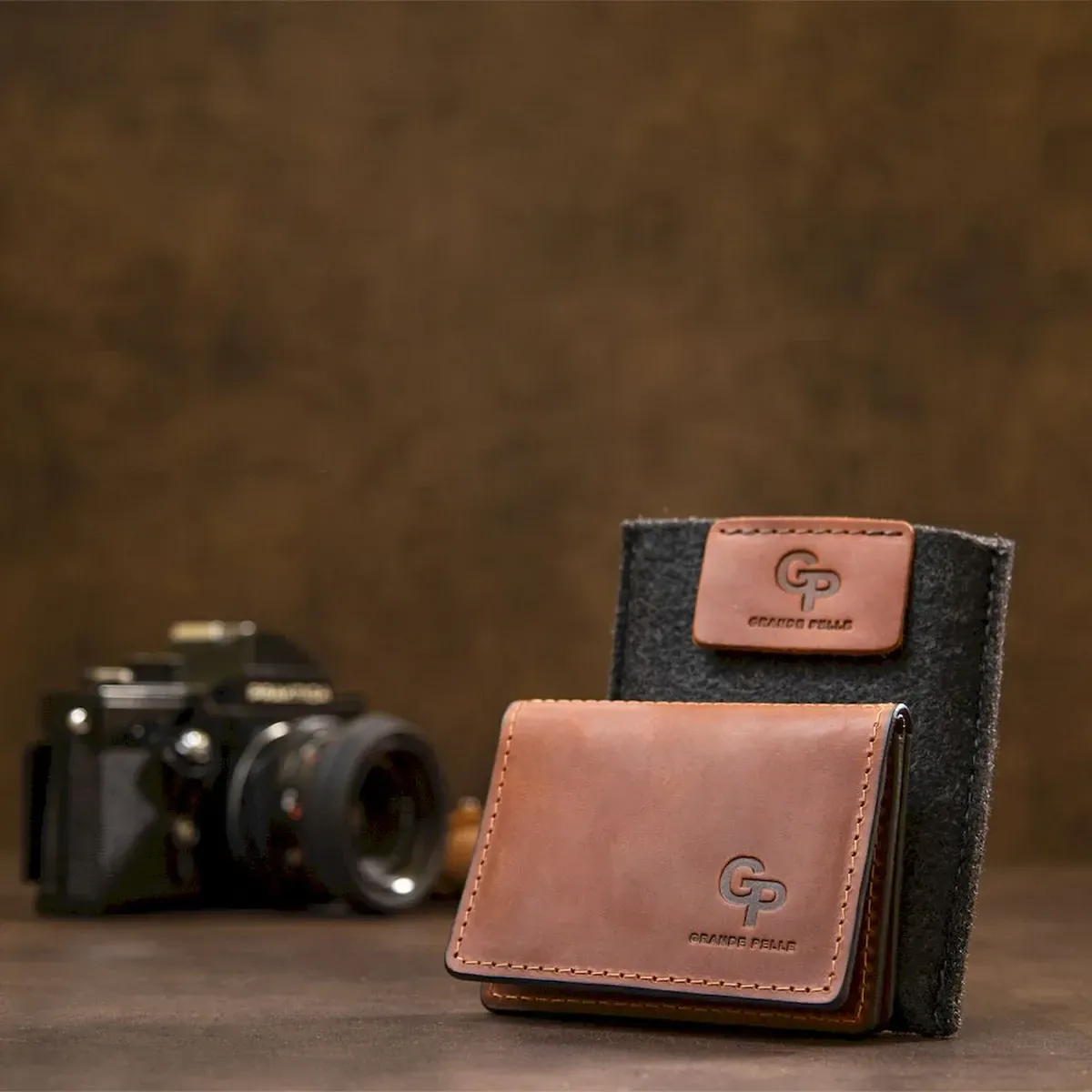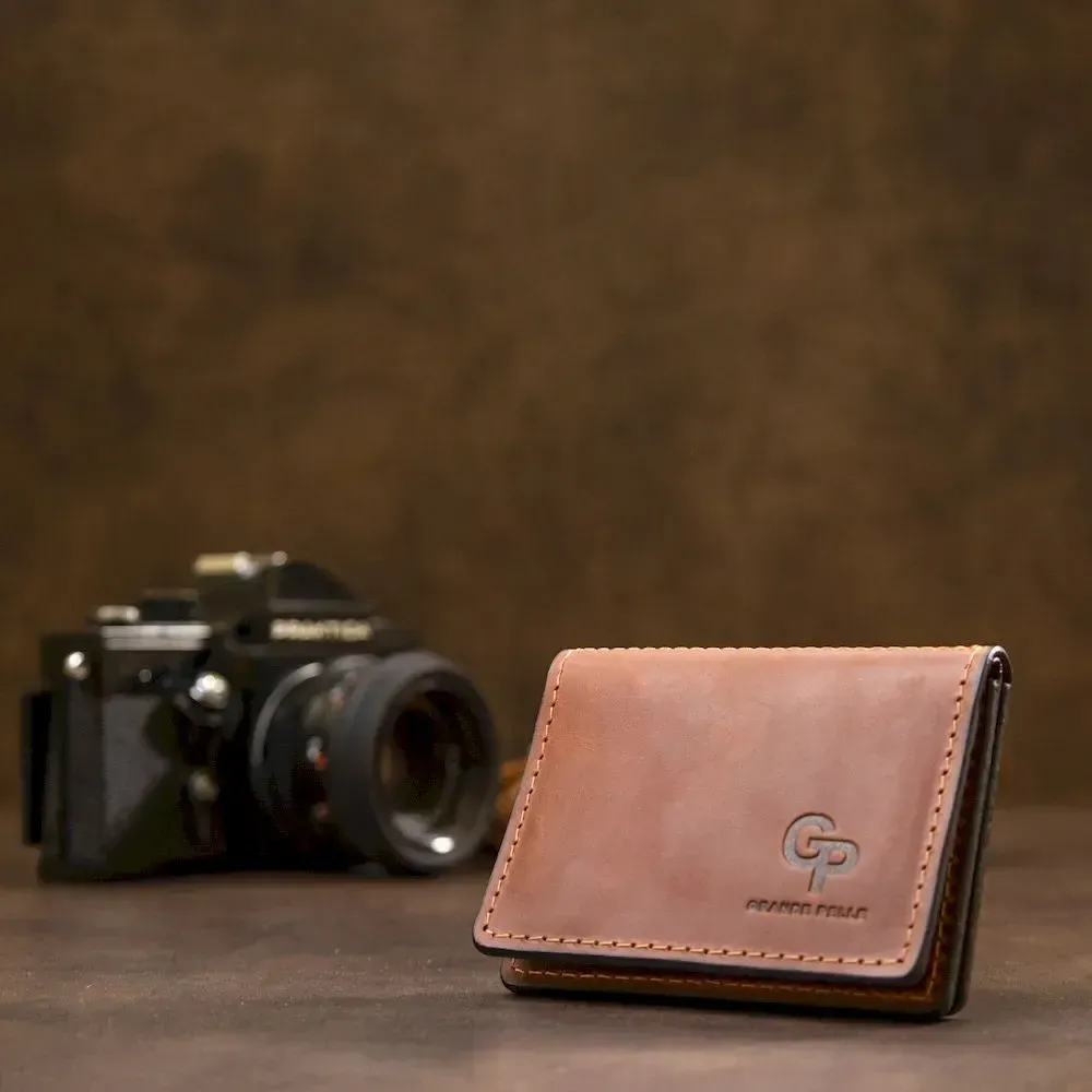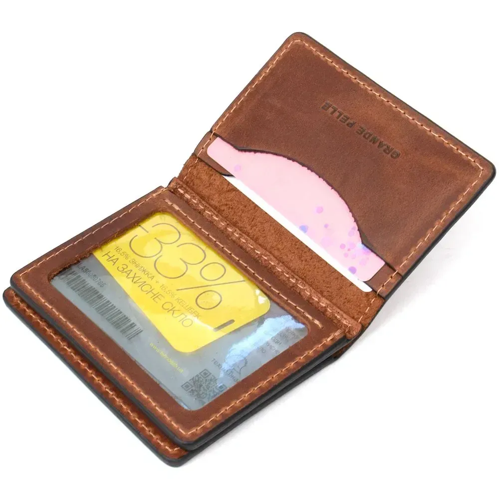 Шкіряна компактна візитниця GRANDE PELLE 11489 Коричневий