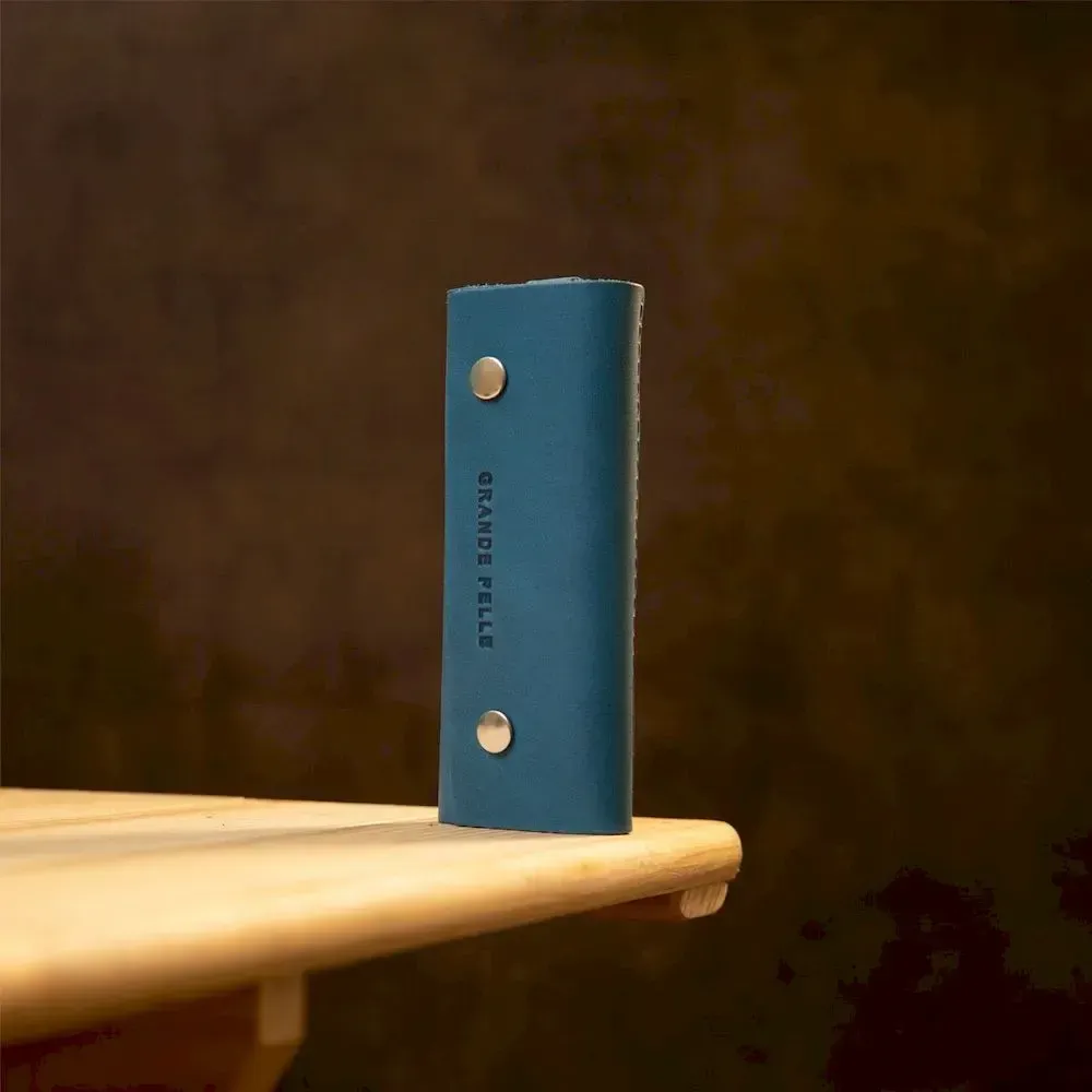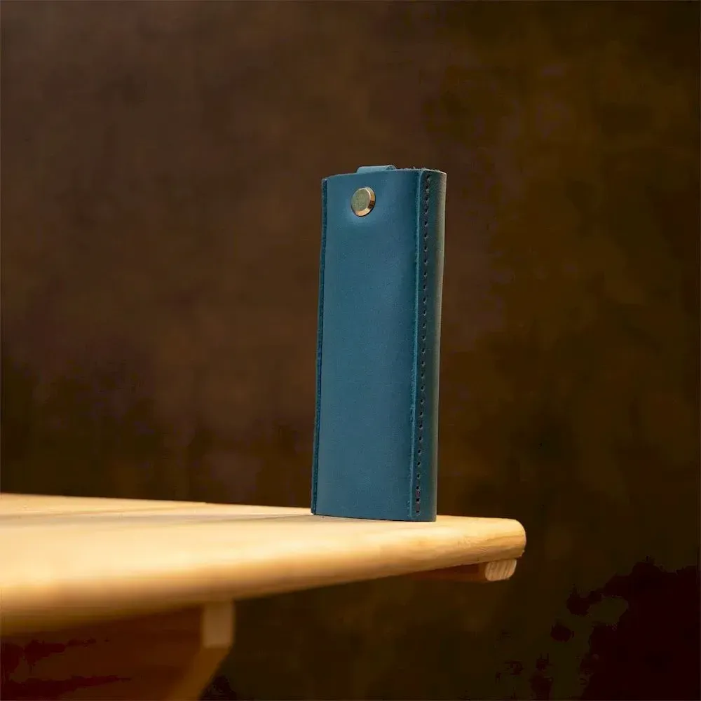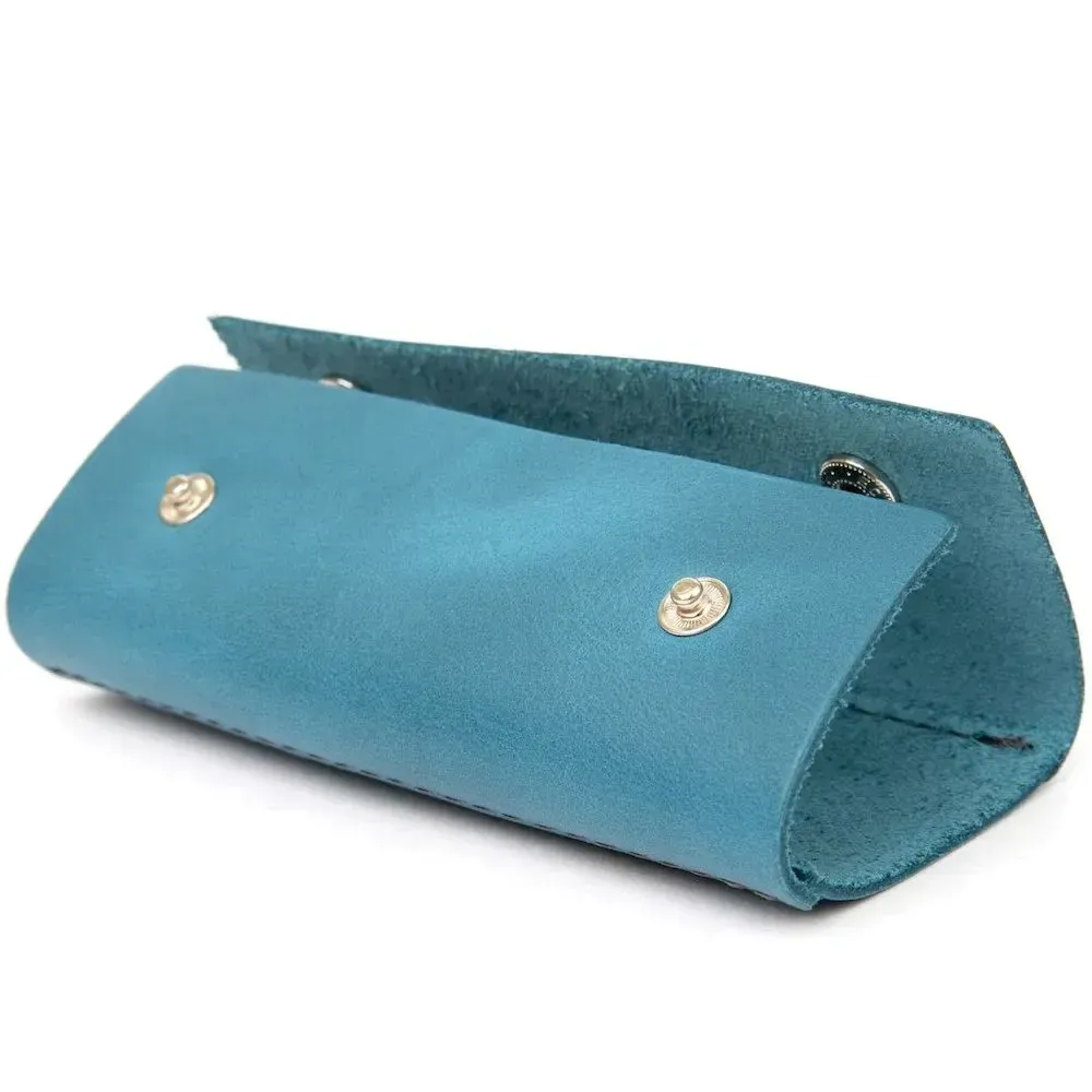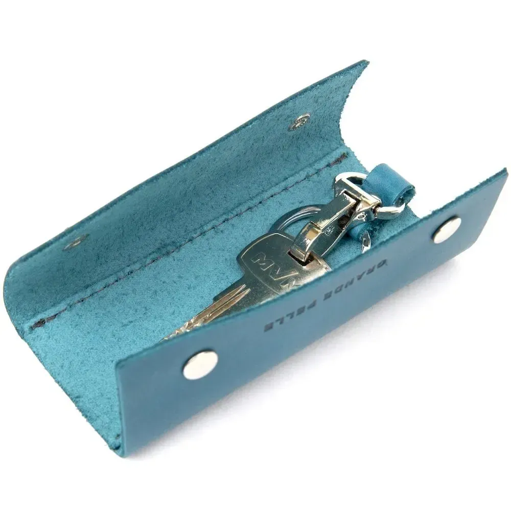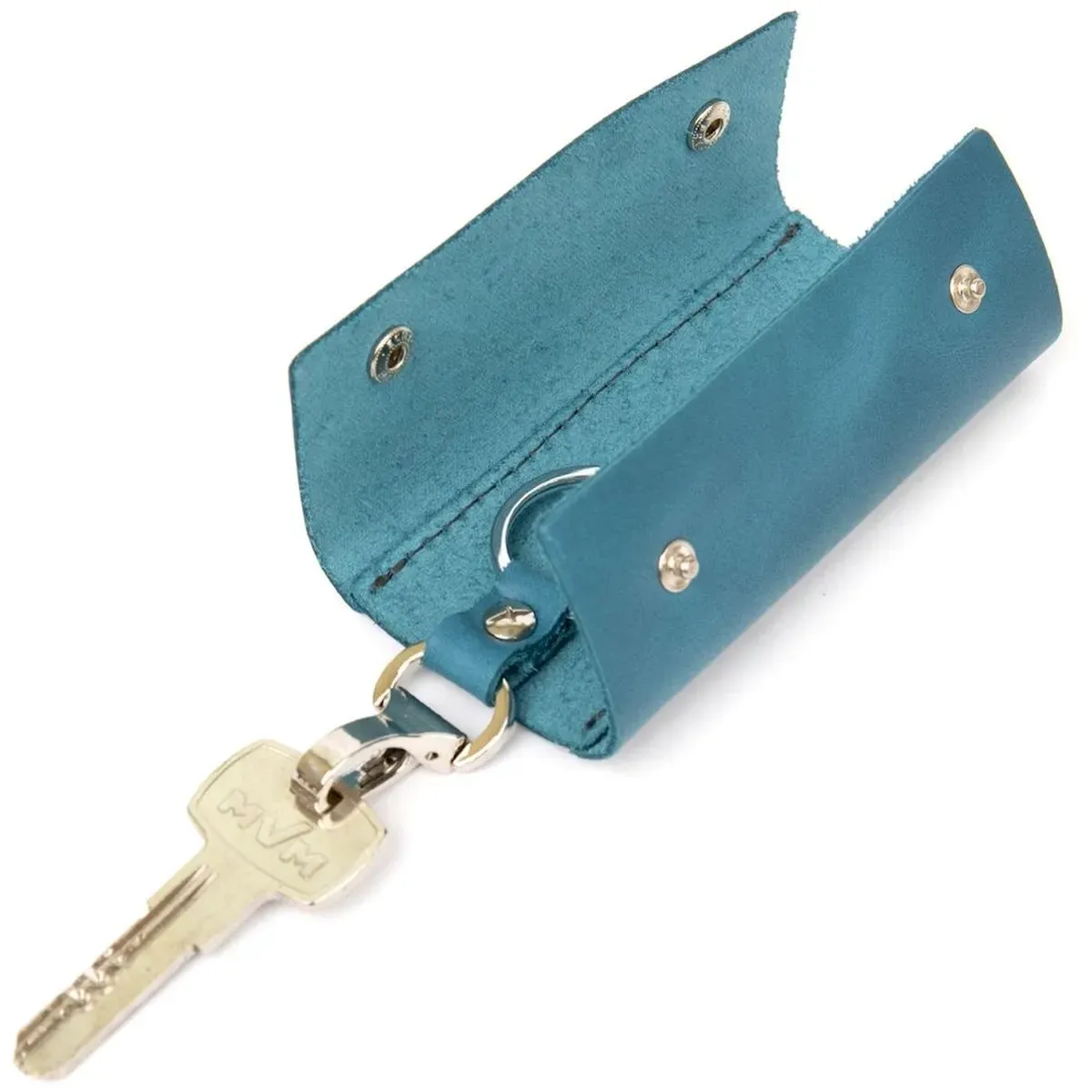 Чудова ключниця у гарному та оригінальному бірюзовому кольорі. Закривається виріб на дві надійні металеві кнопки, в експлуатації це дуже зручно. Якість шкіри дуже висока, тому ключниця буде служити довгу годину. Може стати чудовим подарунком для близької людини.