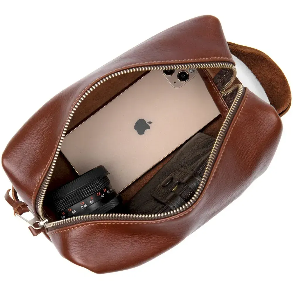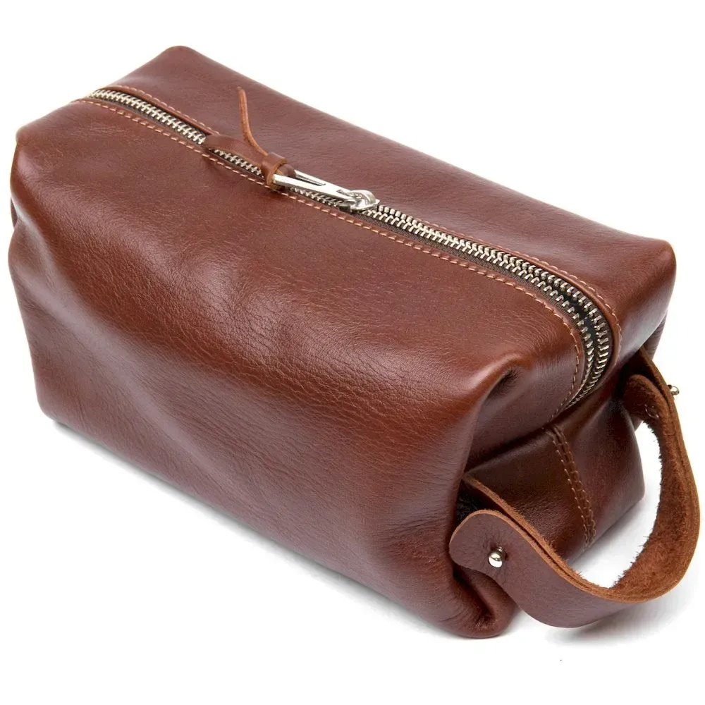 Бренд: GRANDE PELLE. - Закривається на блискавку; - збоку є ручка для перенесення; - фурнітура срібного кольору; Добротна чоловіча косметичка з високоякісної натуральної шкіри в красивому насиченому коричневий колір. Має компактні розміри, але при цьому дуже містка та функціональна. Така косметичка може стати незамінним аксесуаром у поїздці або просто у повсякденному використанні. Також вона може стати незабутнім подарунком для близької людини.