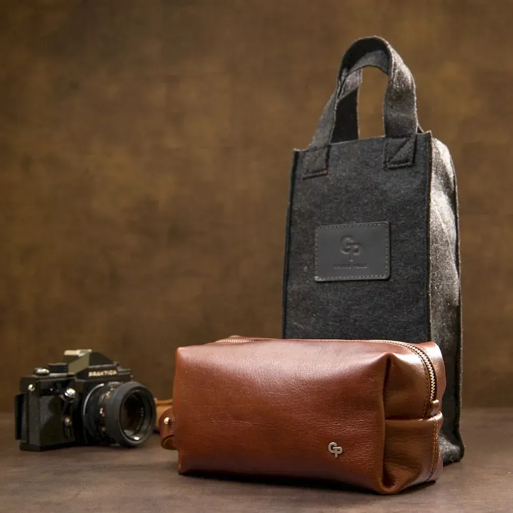 Шкіряна чоловіча косметичка GRANDE PELLE 11418 Коричневий