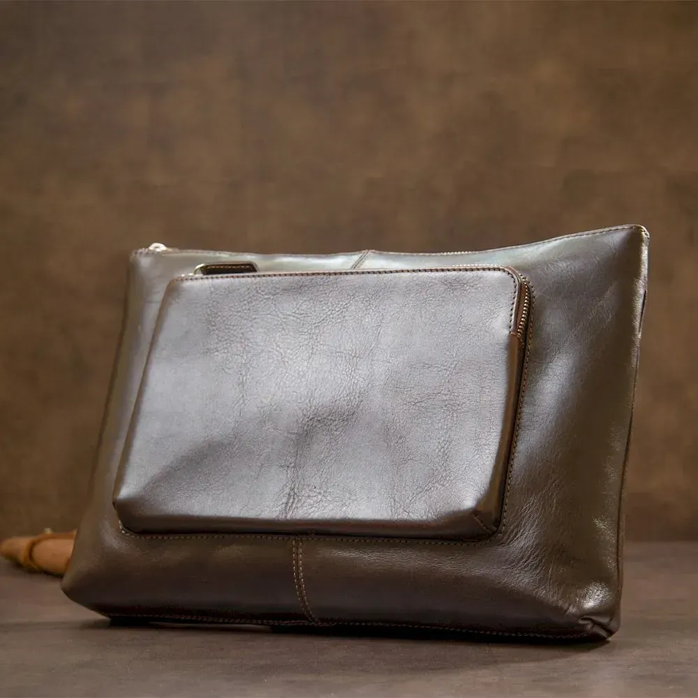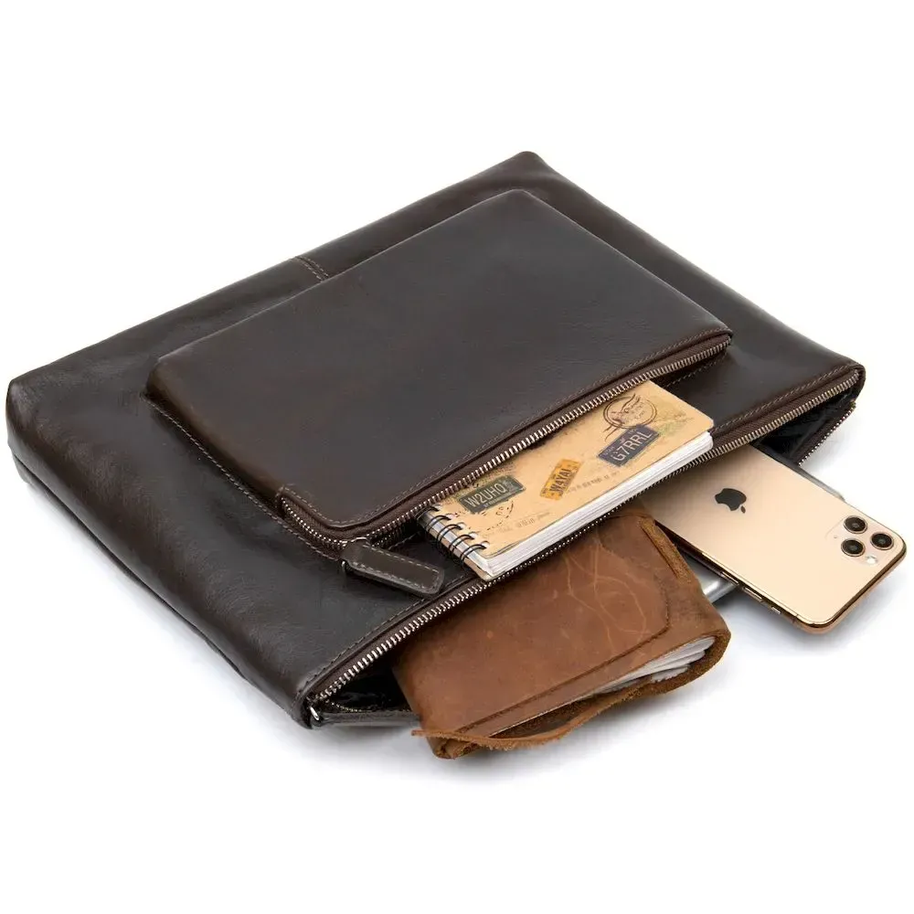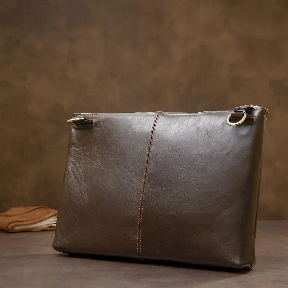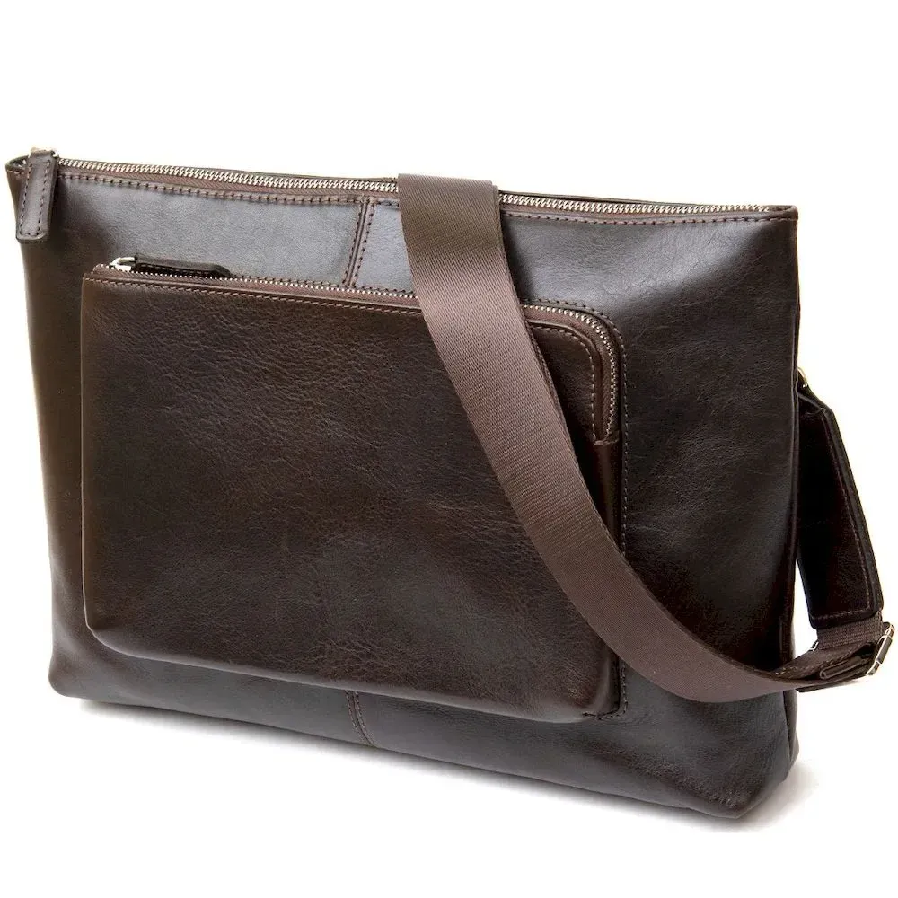 Шкіряна чоловіча прямокутна сумка для ноутбука GRANDE PELLE 11438 Коричневий