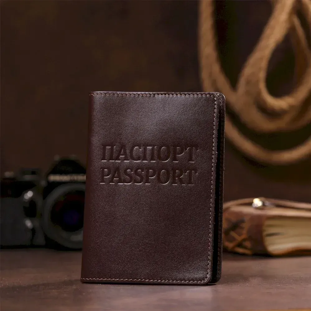 Шкіряна обкладинка на паспорт з написом SHVIGEL 13976