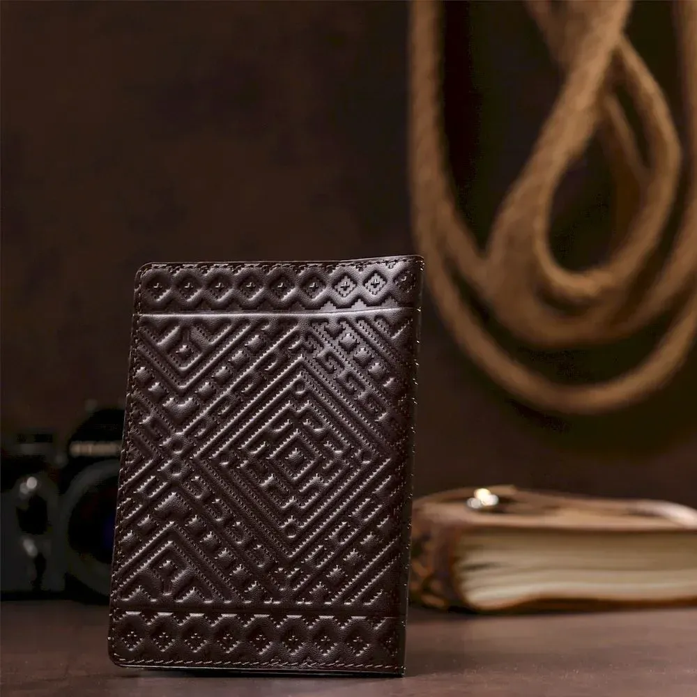 Шкіряна обкладинка на паспорт з ромбами SHVIGEL 13974