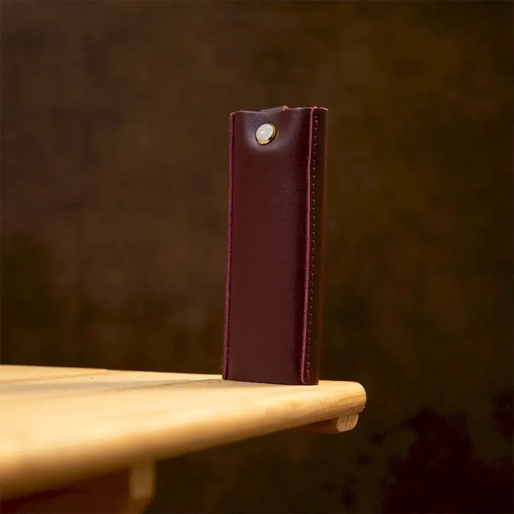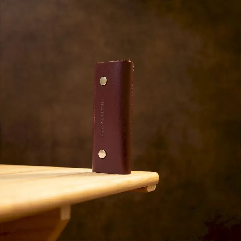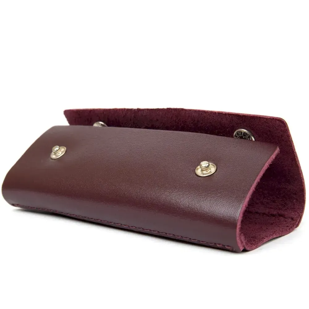 Чудова ключниця з натуральної товстої добротної шкіри, яка прослужить вам тривалу годину. Закривається за допомогою надійних металевих кнопок, всі шви добре прошиті і мають такий самий насичений бордовий колір, як і сама ключниця. Ця модель стане незабутнім подарунком для рідного людини.