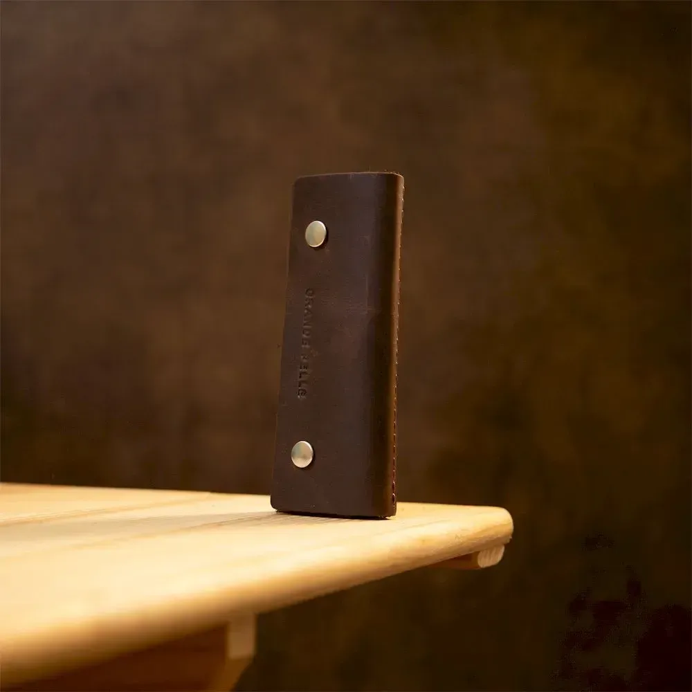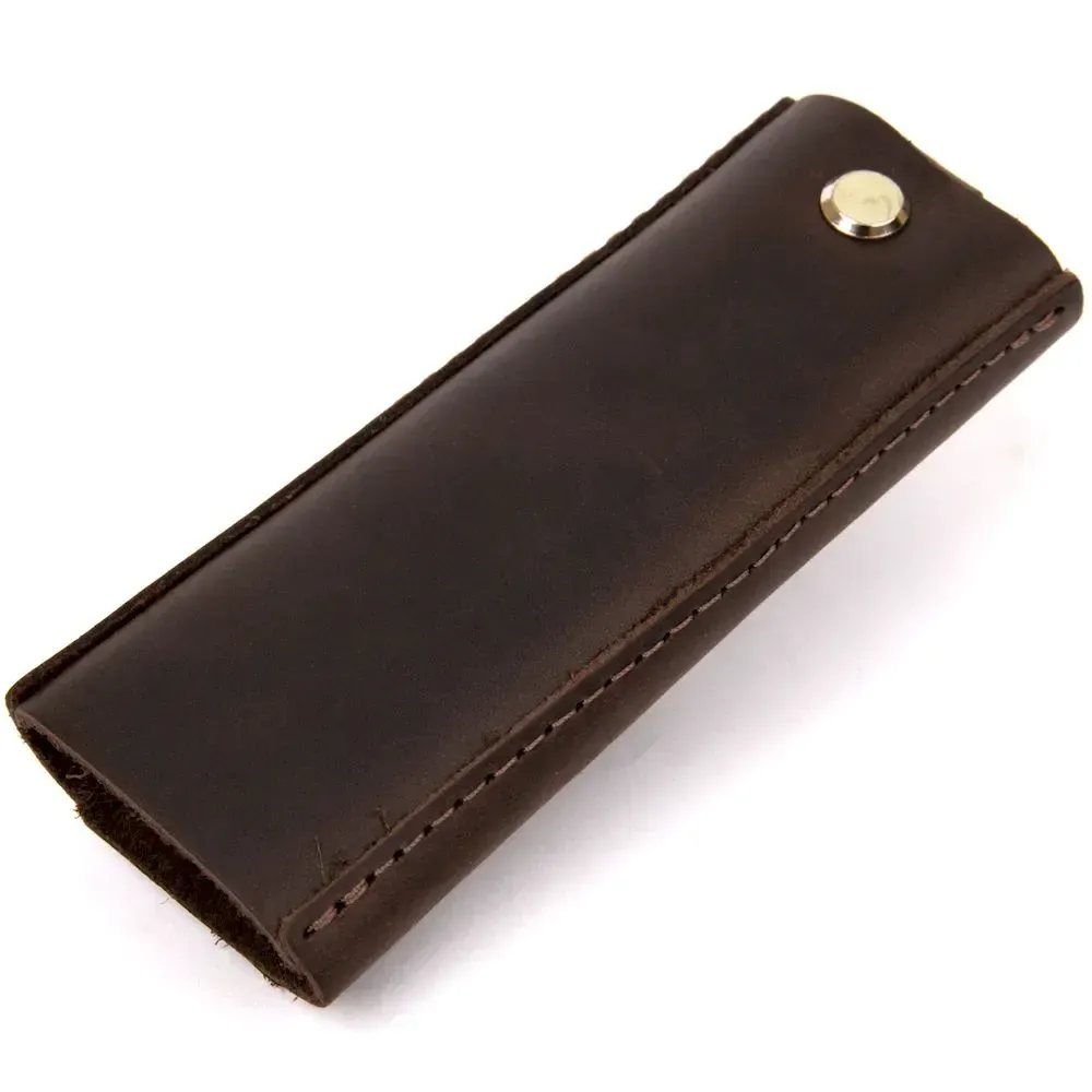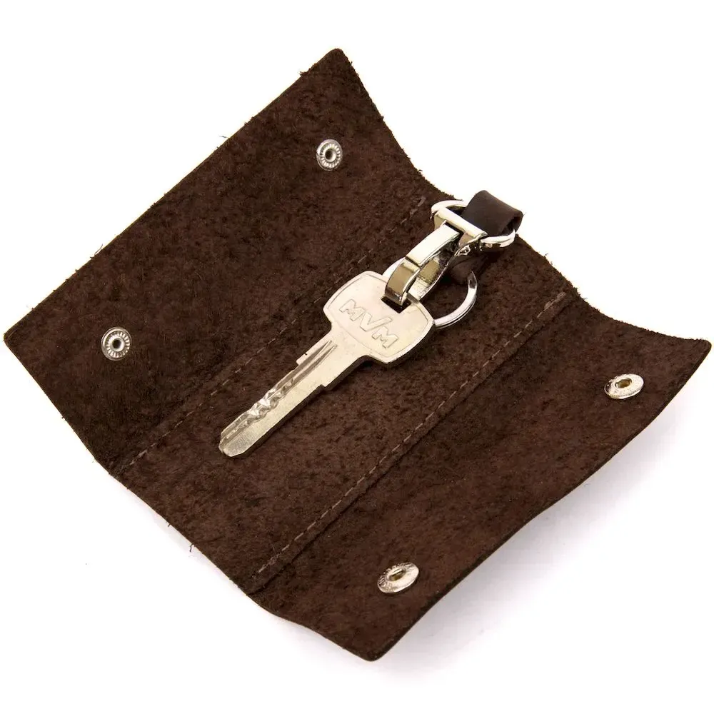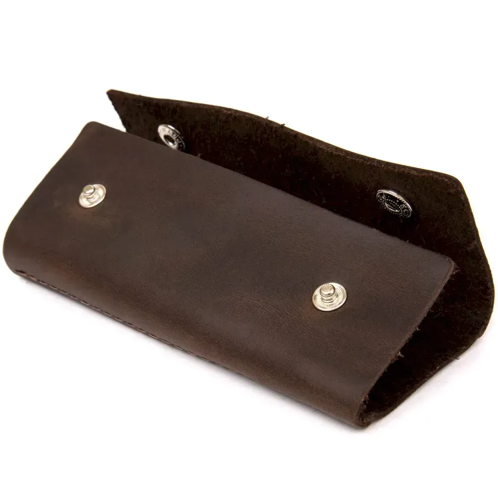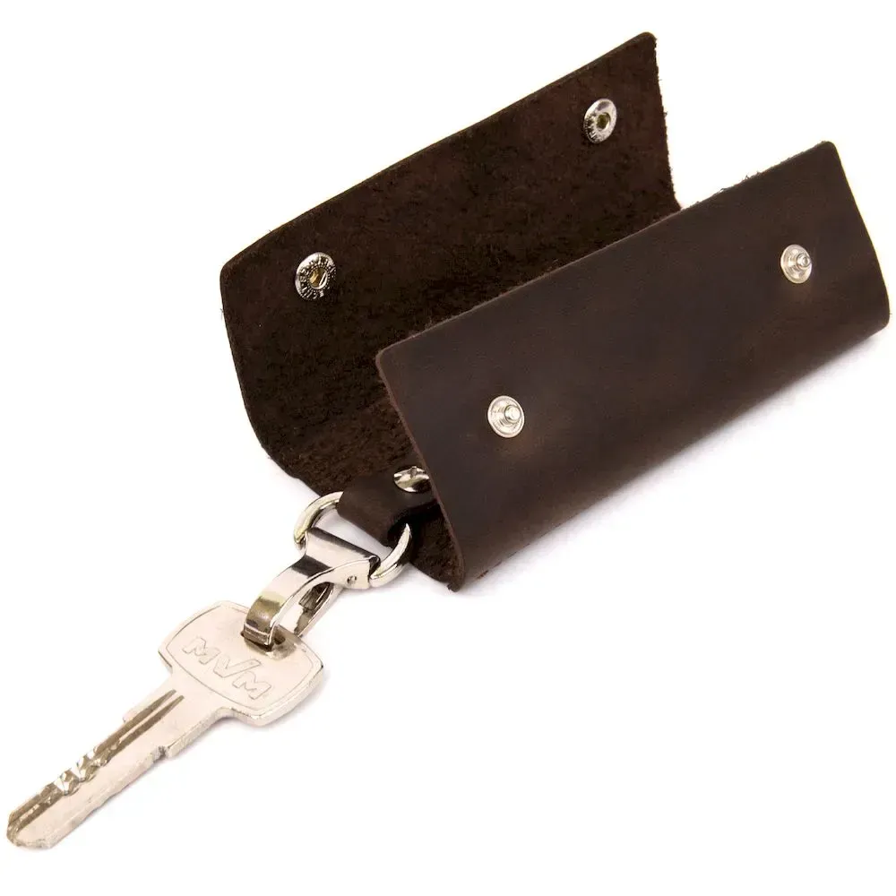 Універсальна винтажна ключниця із натуральної шкіри високої якості. Закривається на дві металеві кнопки, що дуже зручно та практично. Колір фурнітури – срібло. Виглядає стильно та дорого. Упаковка представлена у вигляді фірмового чохла.