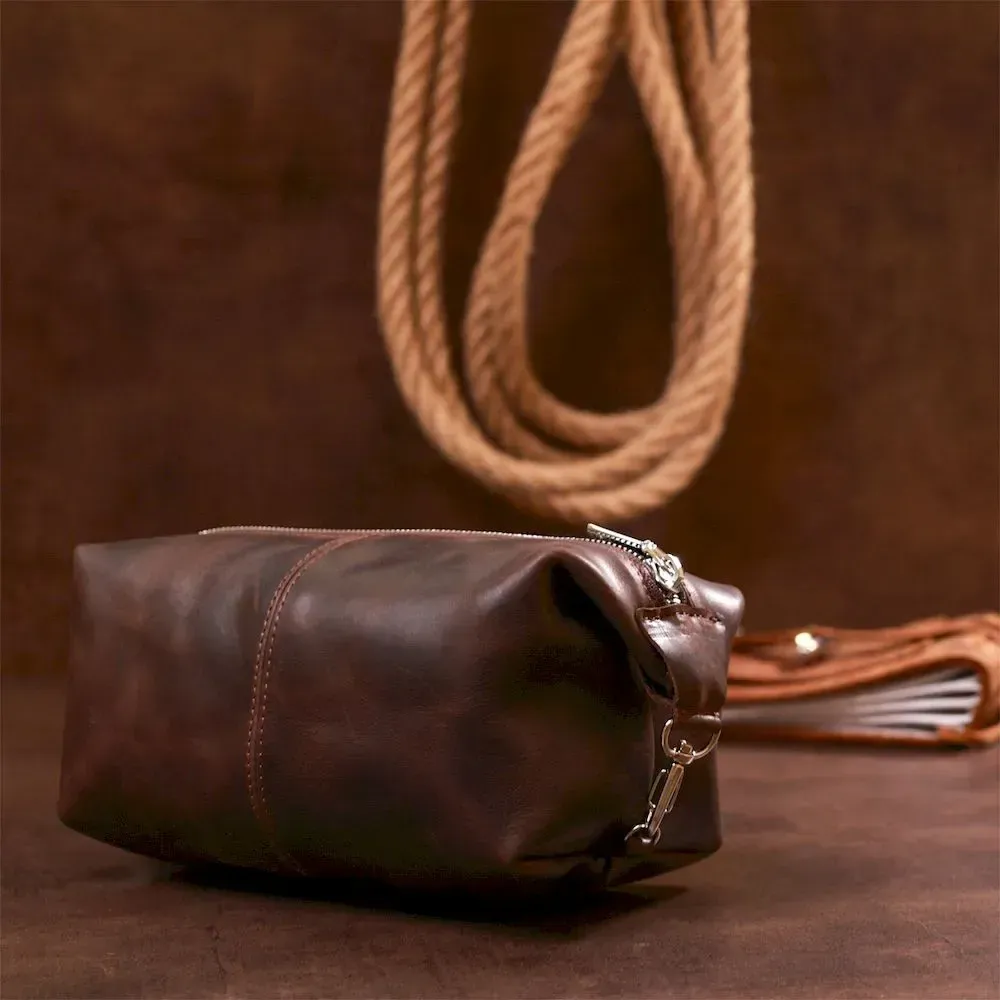 Шкіряна вінтажна косметичка Shvigel 16398 Коричневий