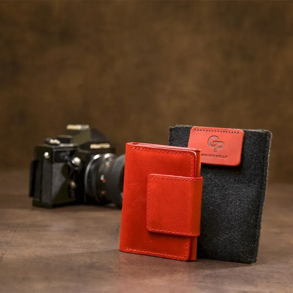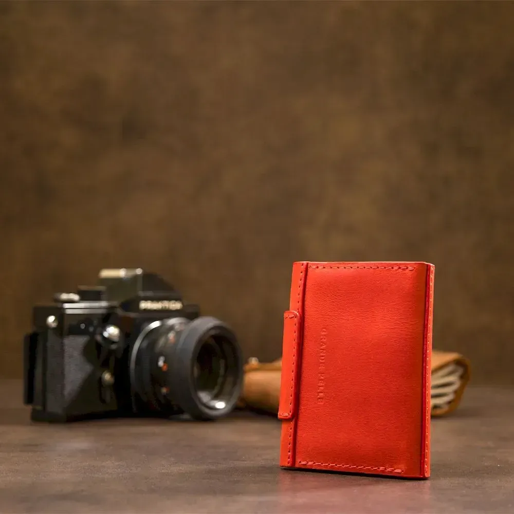 Шкіряна вінтажна візитниця GRANDE PELLE 11407 Червоний