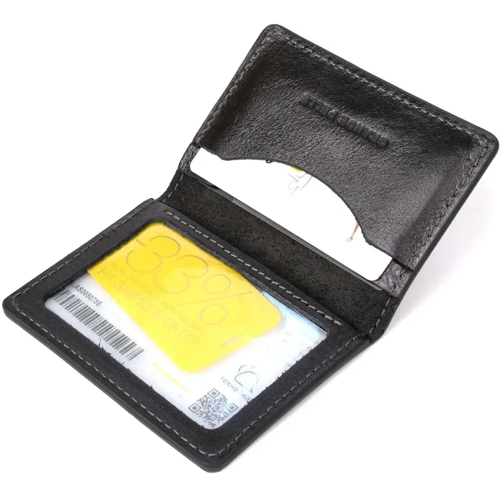 Компактна візитниця для Ваших найважливіших карт. Виконано виріб з добротної гладкої та приємної на дотик натуральної шкіри. Завдяки універсальному чорному кольору підійде і чоловікам, і жінкам. У сучасному світі цей аксесуар просто необхідний.