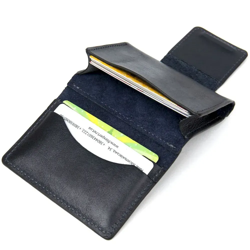 - закривається на хлястик з магнітом; :10.5pt">Компактна універсальна візитниця з натуральної шкіри в гладкій фактурі. практично не відрізняється від чорного. Запакована візитниця у стильний фірмовий чохол, тому гарно виглядає і для подарунка.